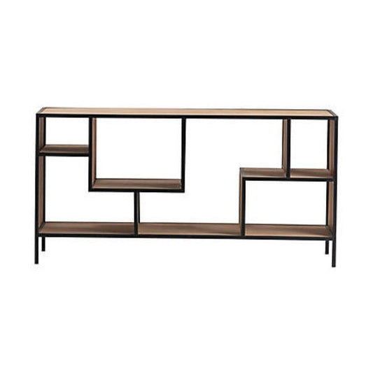 Crestview Collection Fleetwood 64" x 16" x 32" Rustic Metal And Wood Angled Console In Natural Wood and Black Finish