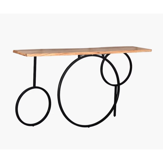Crestview Collection Harmony 58" x 14" x 31" Rustic Metal And Wood Console Table In Natural Wood and Black Finish