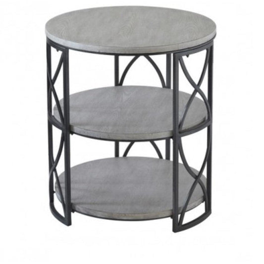 Crestview Collection Springfield 24" x 24" x 26" Traditional Metal And Wood Tiered Accent Table In Gray and Black Finish