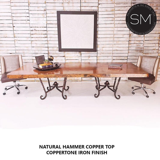Mexports by Susana Molina 120" x 48" Natural Hammer Copper Top Double Pedestal Dining Table