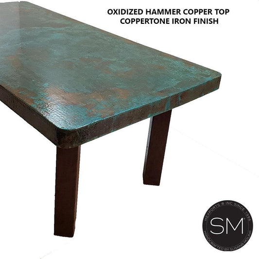 Mexports by Susana Molina 96" x 48" Oxidized Hammer Copper Top Round Corners Dining Table