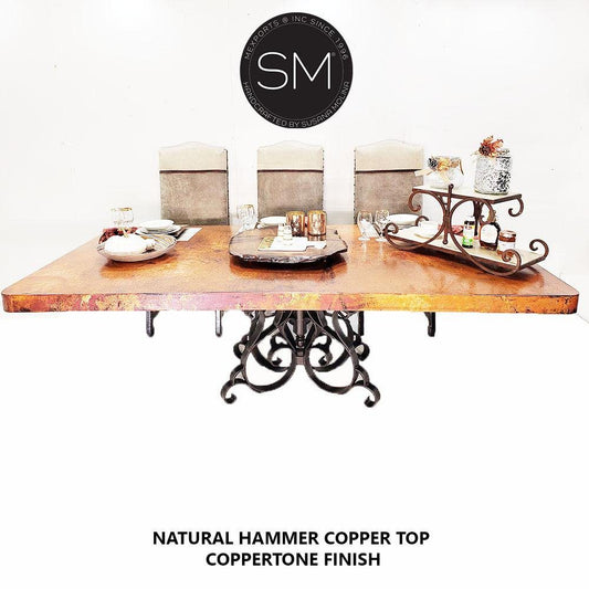 Mexports by Susana Molina 96" x 48" Natural Hammer Copper Top Round Corners Dining Table