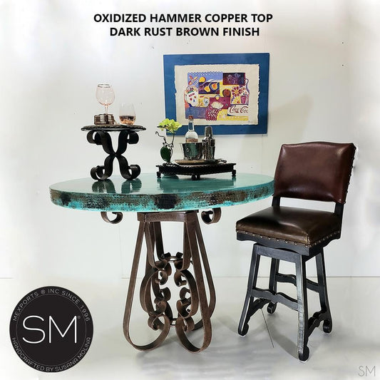 Mexports by Susana Molina 48" Oxidized Hammered Copper Top Round Modern Bar Table With Nails