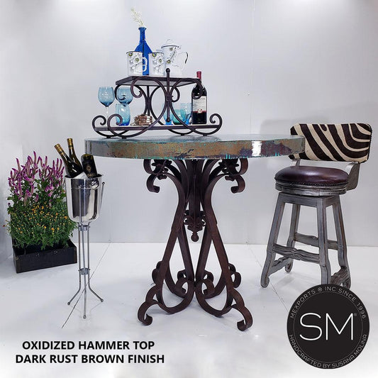 Mexports by Susana Molina 38" Oxidized Hammered Copper Top Round Bistro and Pub Table