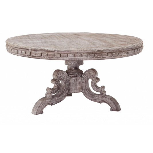 HomeRoots Solid Wood Round Dining Table With Whitewash Gray Finish