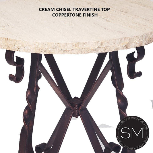 Mexports by Susana Molina 38" Cream Chisel Travertine Top Round Outdoor Tall Bar Table