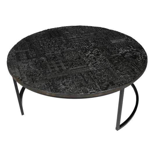 Meva Kaleido 28" Antique Brass Metal Coffee Table With Hexagonal Stamps