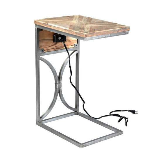Crestview Collection Bengal Manor 14" x 18" x 25" Rustic Acacia Wood And Metal C Side Table with USB Power In Natural Finish