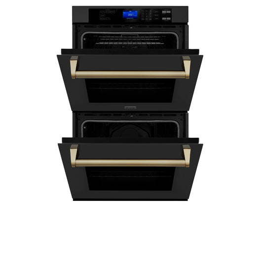 ZLINE Autograph Edition 30" Black Stainless Steel and Champagne Bronze Double Wall Oven with Self Clean and True Convection