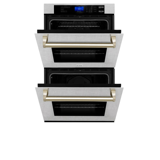ZLINE Autograph Edition 30" Stainless Steel and Champagne Bronze Double Wall Oven with Self Clean and True Convection