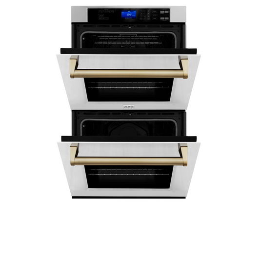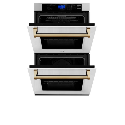 ZLINE Autograph Edition 30" Stainless Steel and Gold Double Wall Oven with Self Clean and True Convection