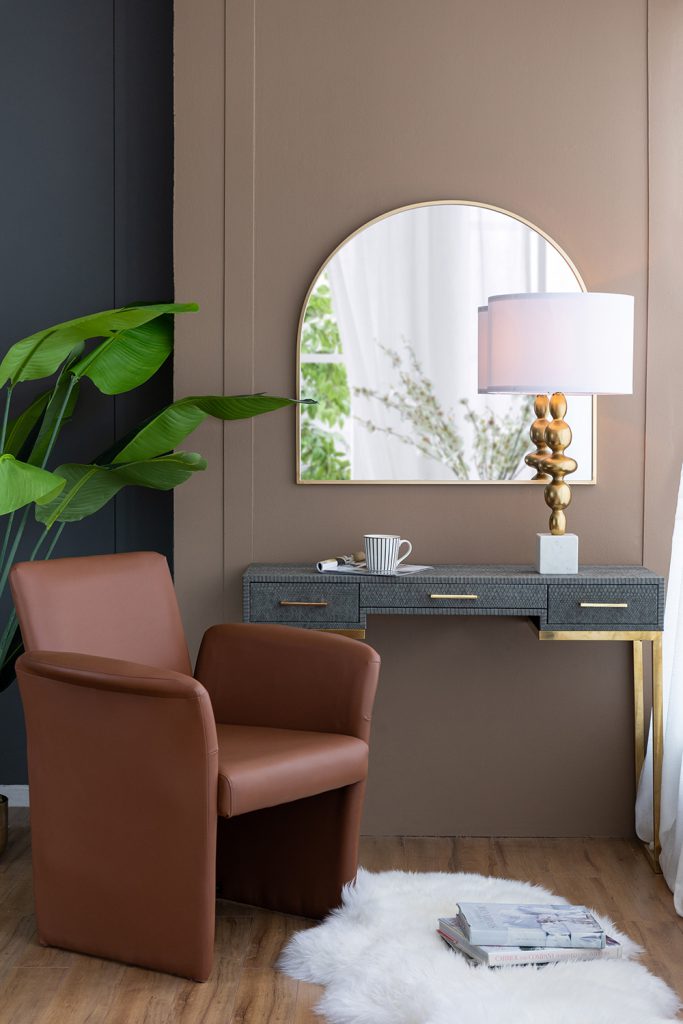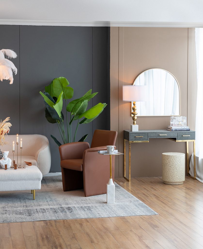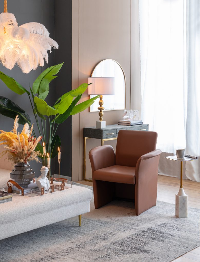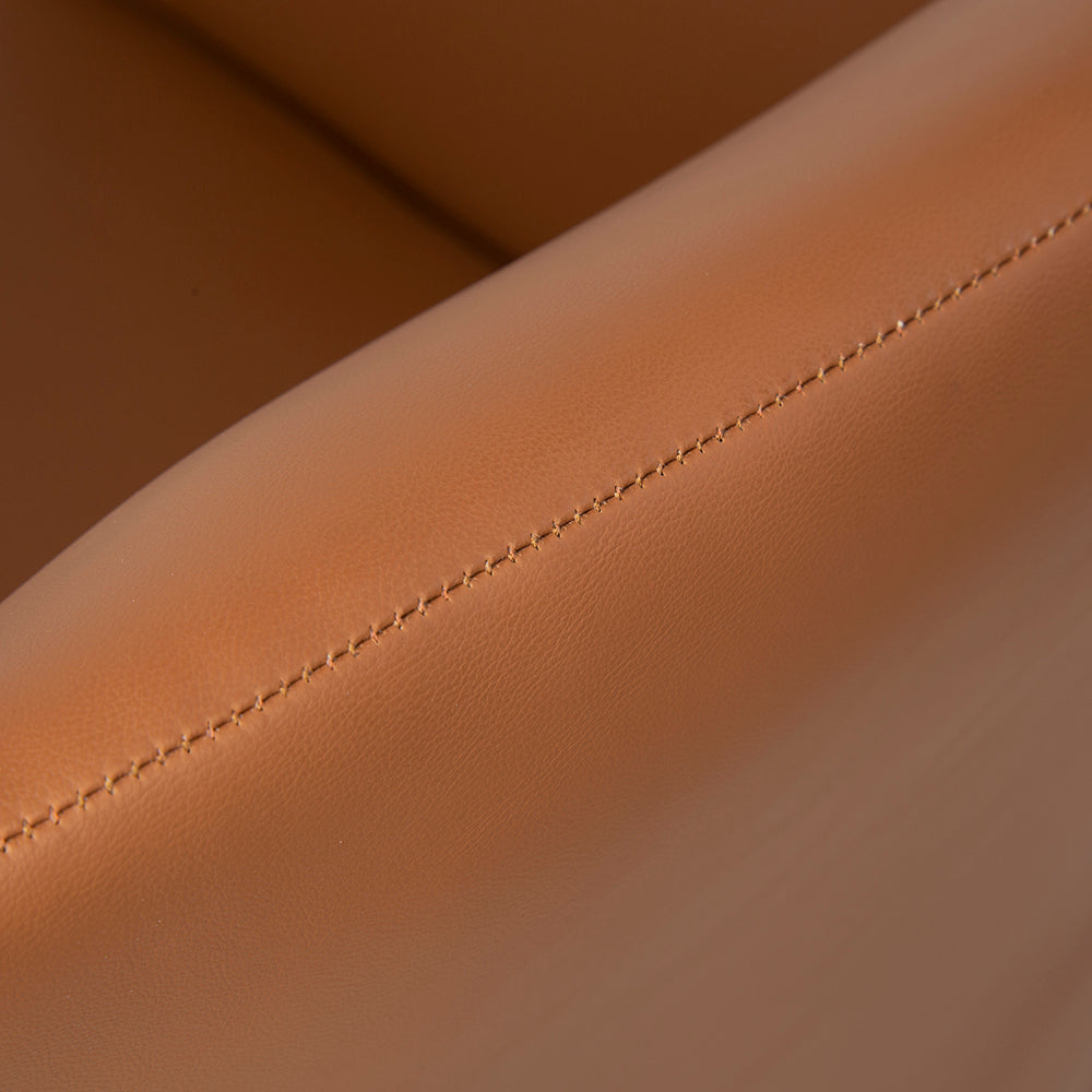 The stunning rich caramel coloring and contemporary styling combine perfectly to create the Adelmo Accent Chair. The sleek design of the sides of the chair raise and finished in a slight curve, creating an interesting silhouette and providing a place to rest. Copying that design, the back of the chair extends to create the perfect design for leisure, anchoring down any contemporary design.