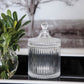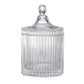The Ancell Lidded Glass Jar features a finial-topped lid that curves down into ribbed sides. Use this traditional piece in the kitchen, living room, or master bathroom to store tea bags, candy, or small bathroom items. The Ancell Jar offers all the glittering beauty of a classic glass piece combined with the ability to store and organize small items.