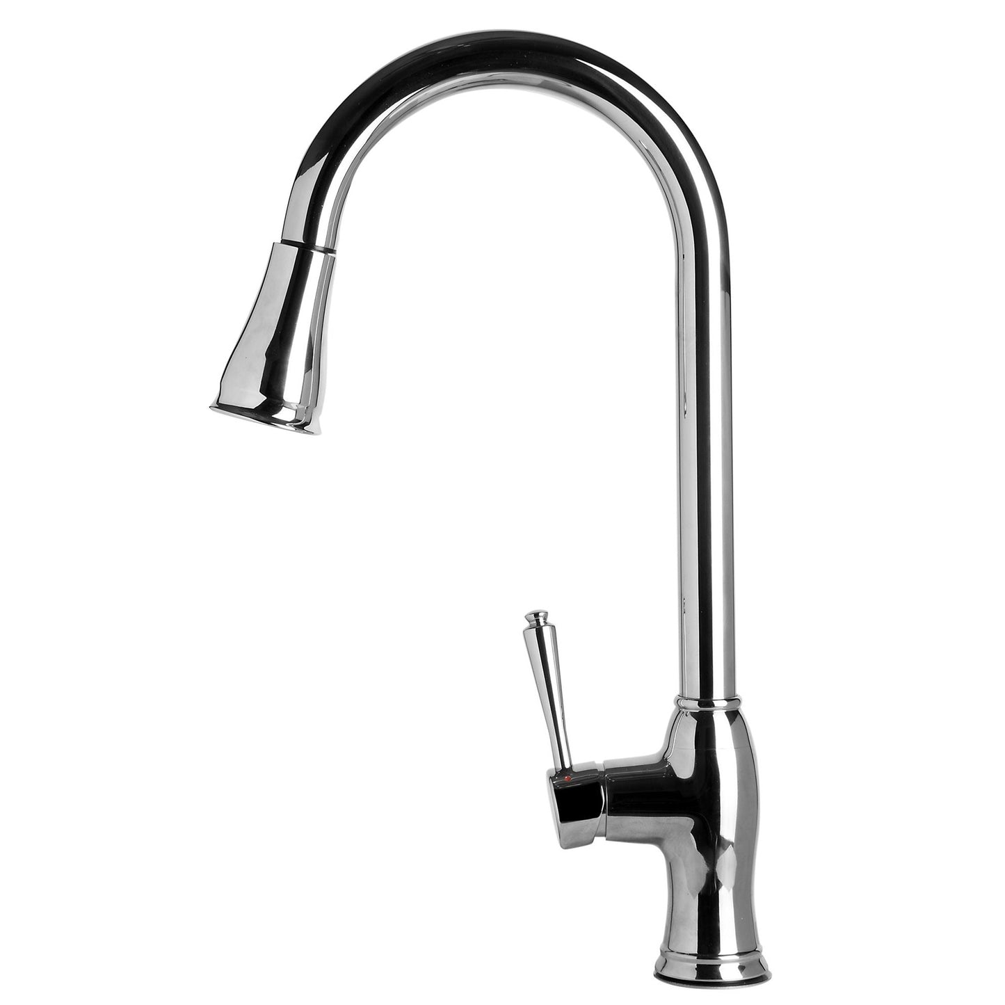 ALFI Brand AB2043-PSS Traditional Solid Polished Stainless Steel Pull Down Kitchen Faucet