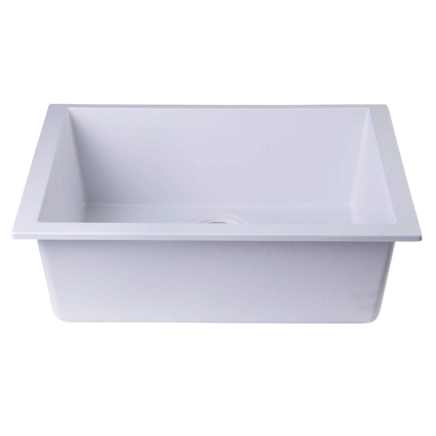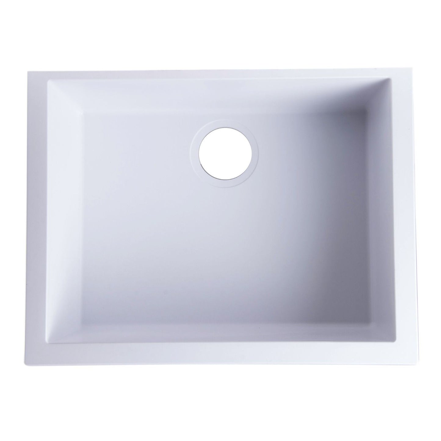 ALFI Brand AB2420UM-W White 24" Undermount Single Bowl Granite Composite Kitchen Sink