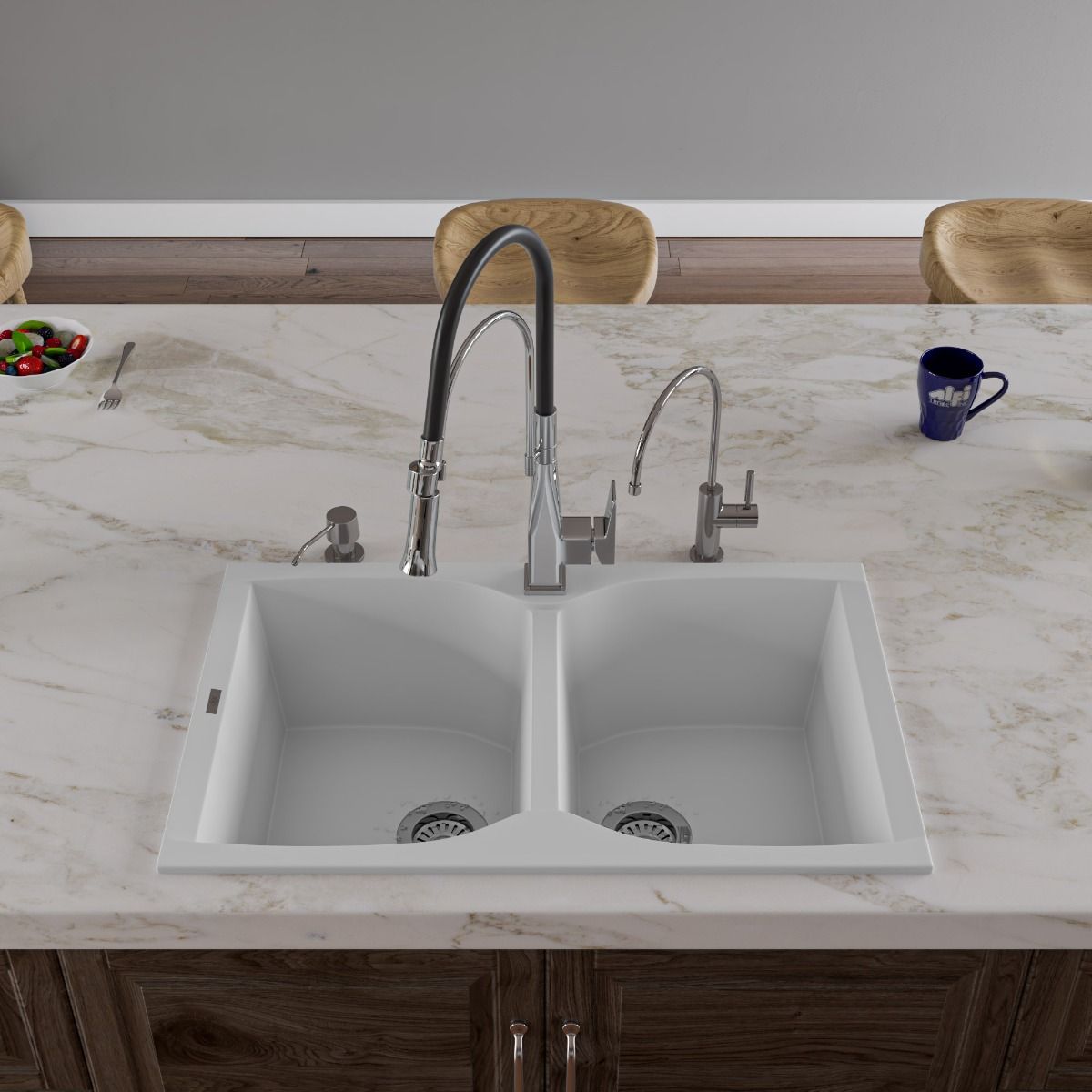 ALFI Brand AB3220DI-W White 32" Drop-In Double Bowl Granite Composite Kitchen Sink