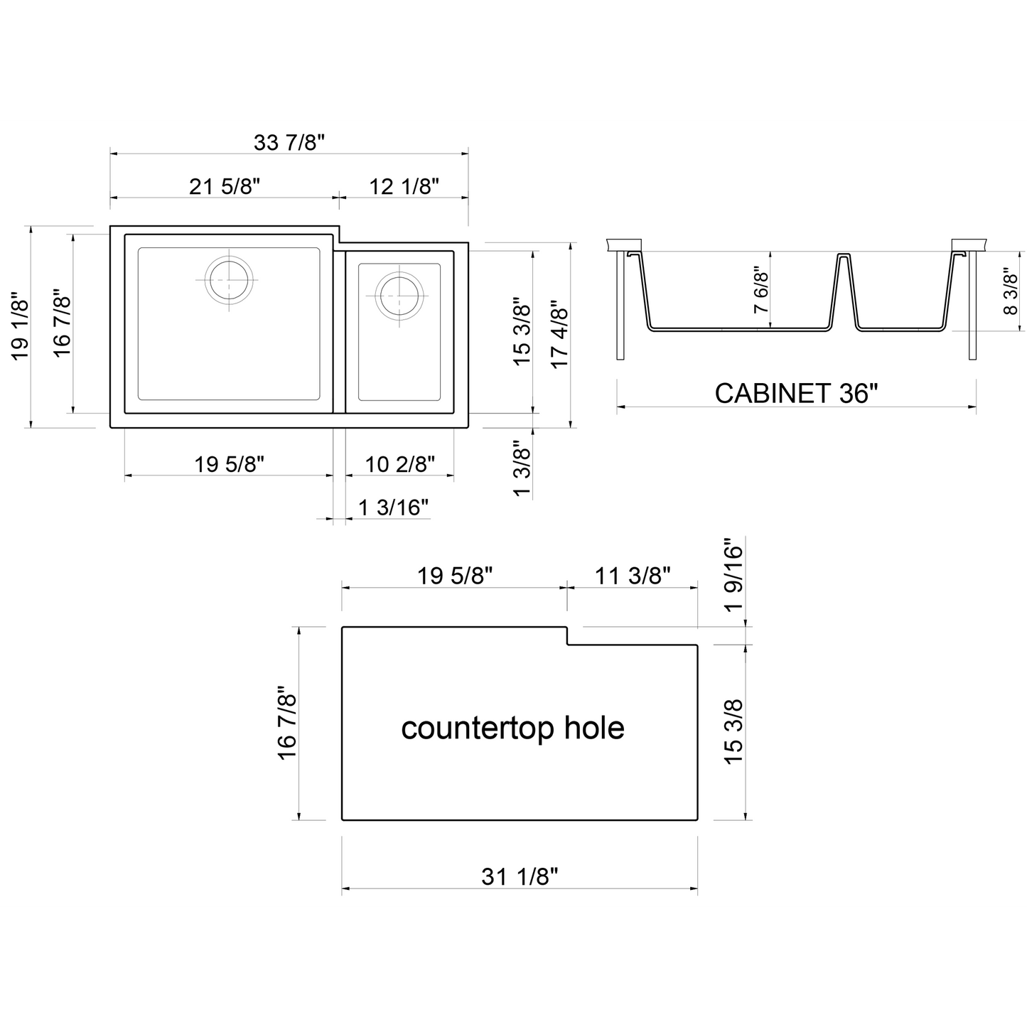 - Inner Bowl Size: 19 3/4" x 16 7/8" x 7 6/8", 10 1/4" x 15 3/8" x 7 6/8"