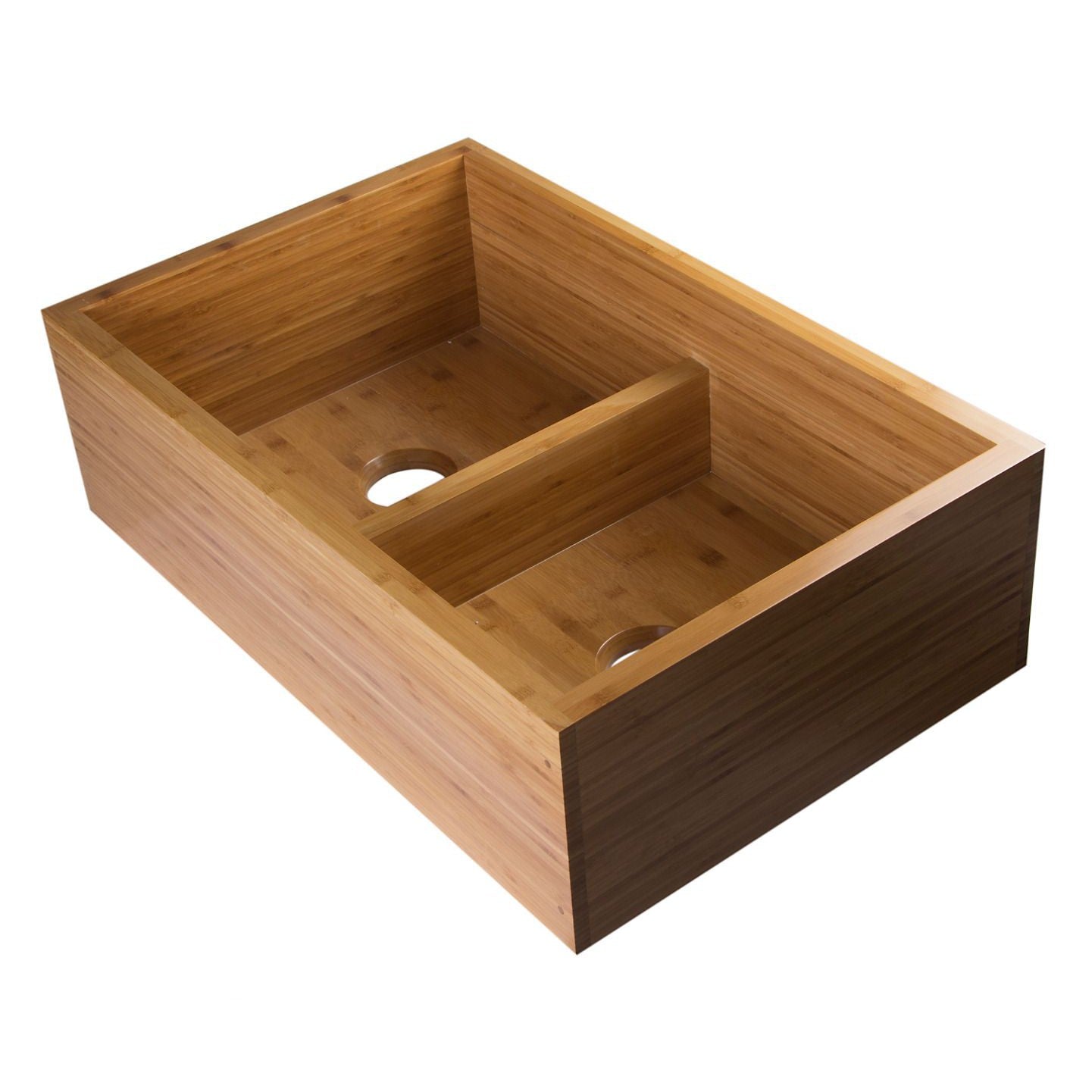 ALFI Brand AB3321 33" Double Bowl Bamboo Kitchen Farm Sink