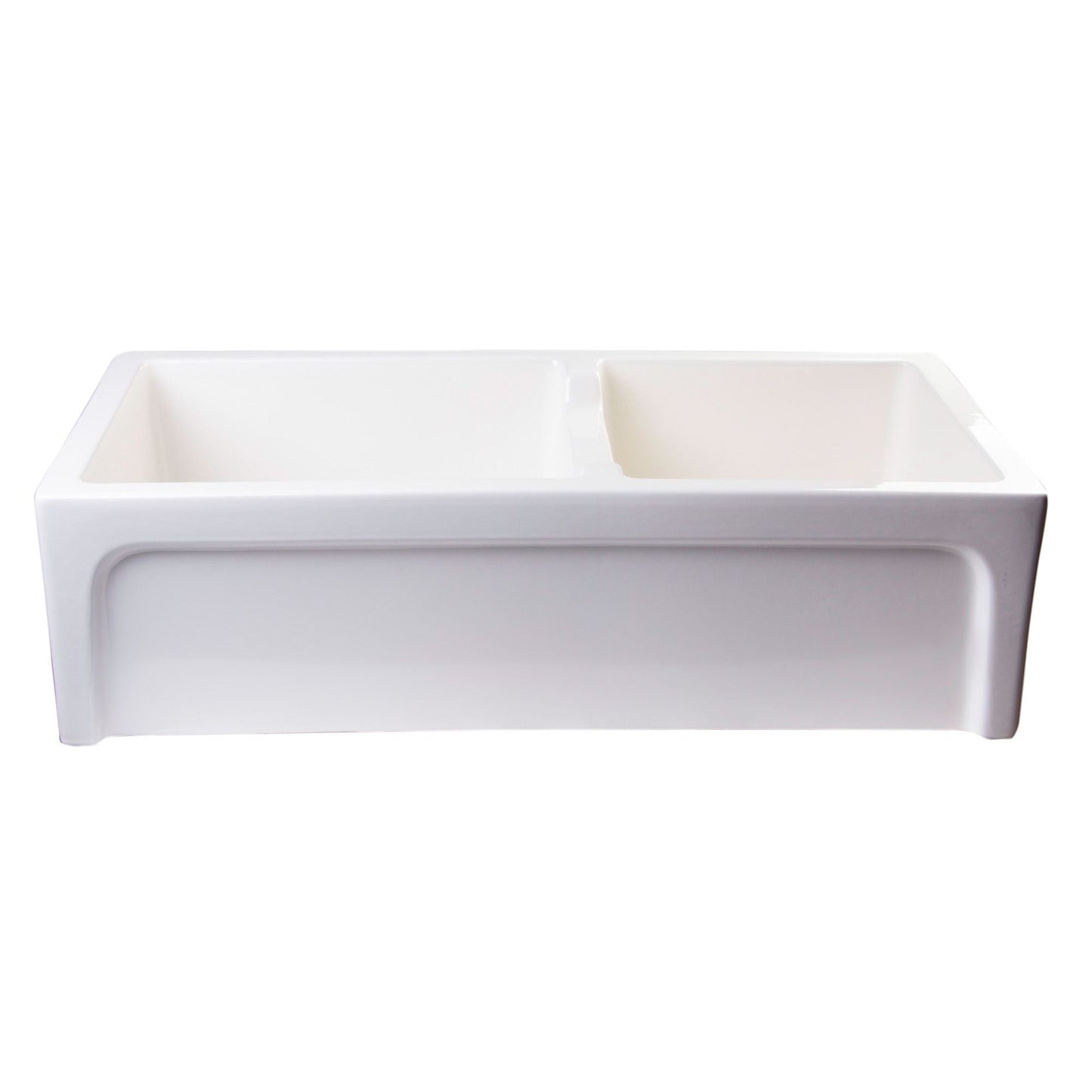 ALFI Brand AB3618ARCH-B 36" Biscuit Arched Apron Thick Wall Fireclay Double Bowl Farm Sink