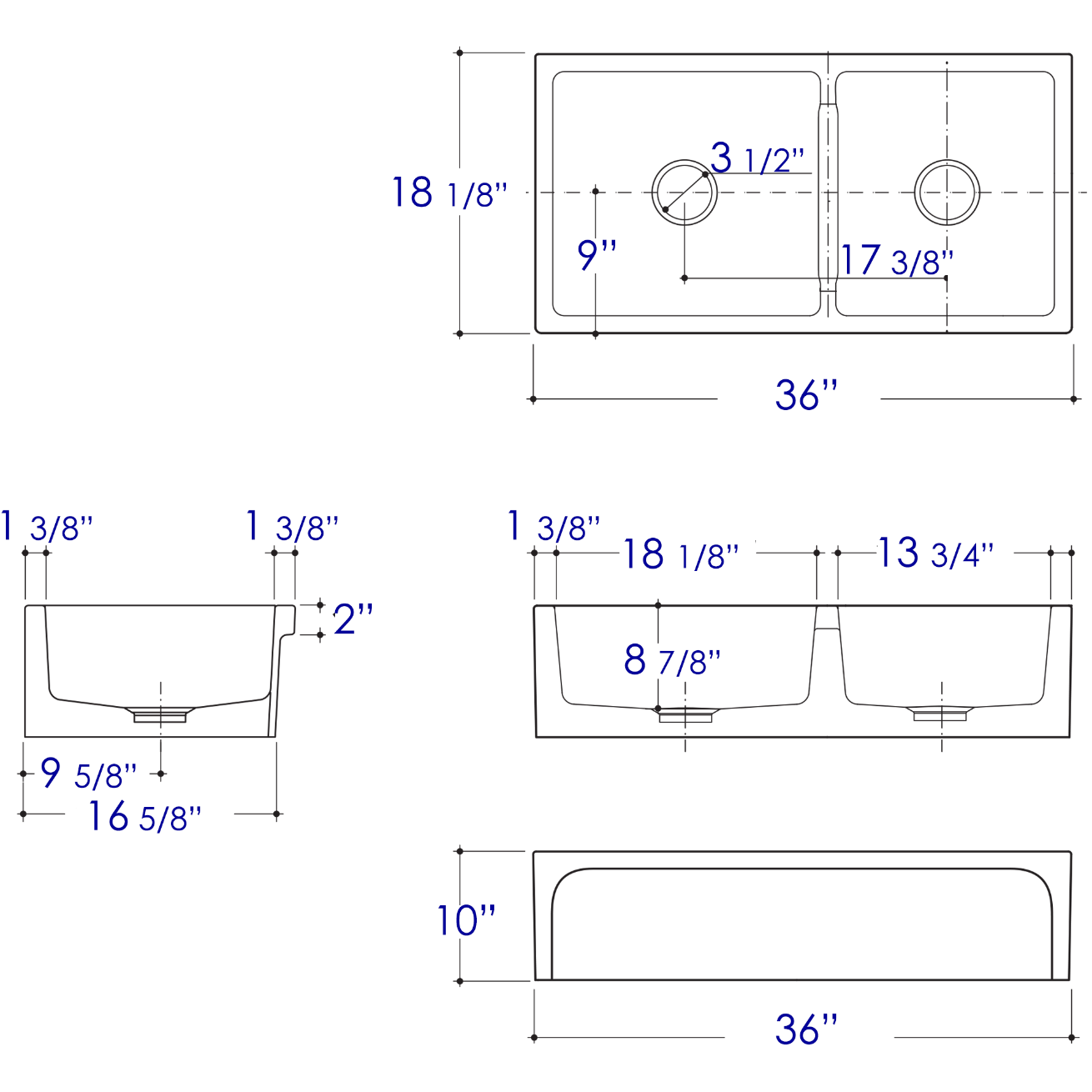 - Due to the organic nature of the fireclay, material dimensions may vary by 1/8" of an inch. We recommend having the sink on location to trace and measure for countertop and cabinet cut outs.