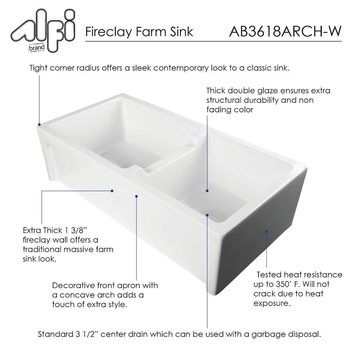 - This sink is constructed of solid high-grade fireclay material using high pressure casting, ensuring durability, longevity, and resilience to acids, alkali's, scratches, and chipping
