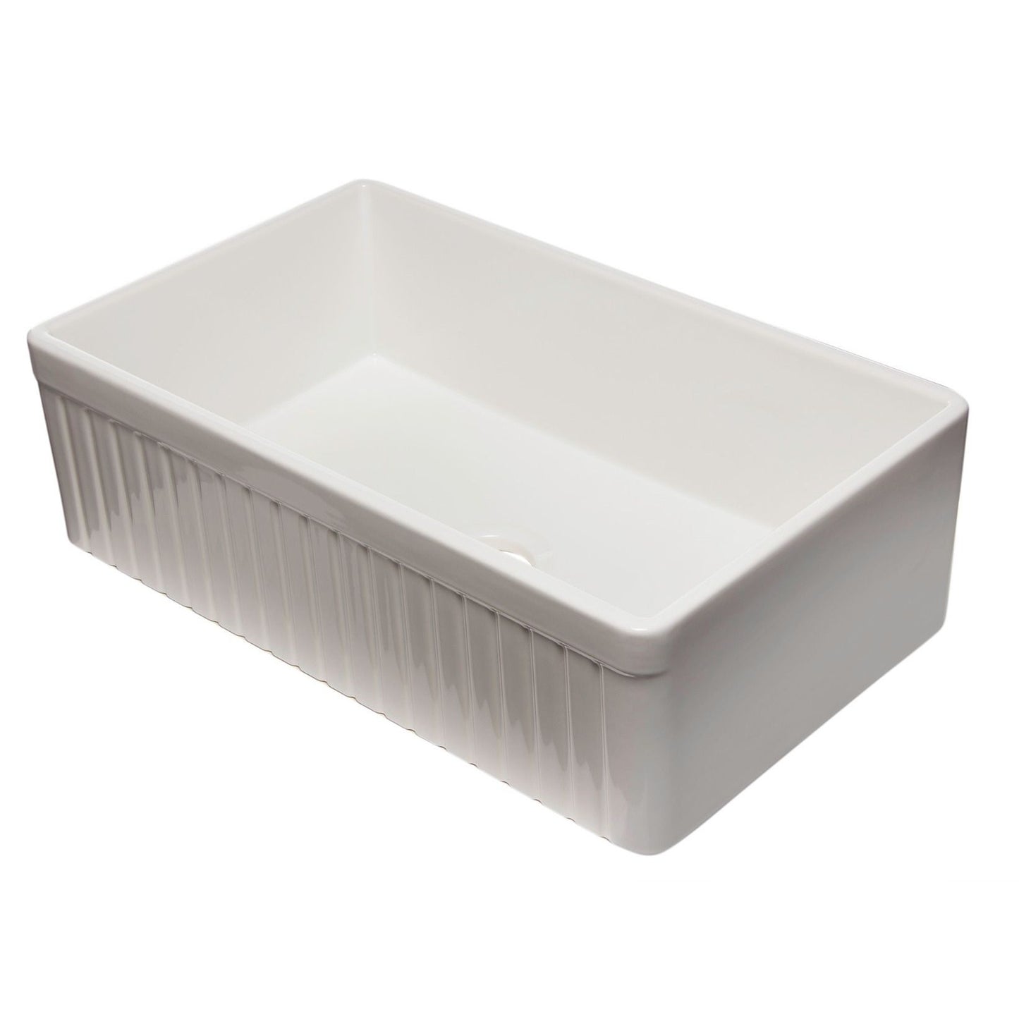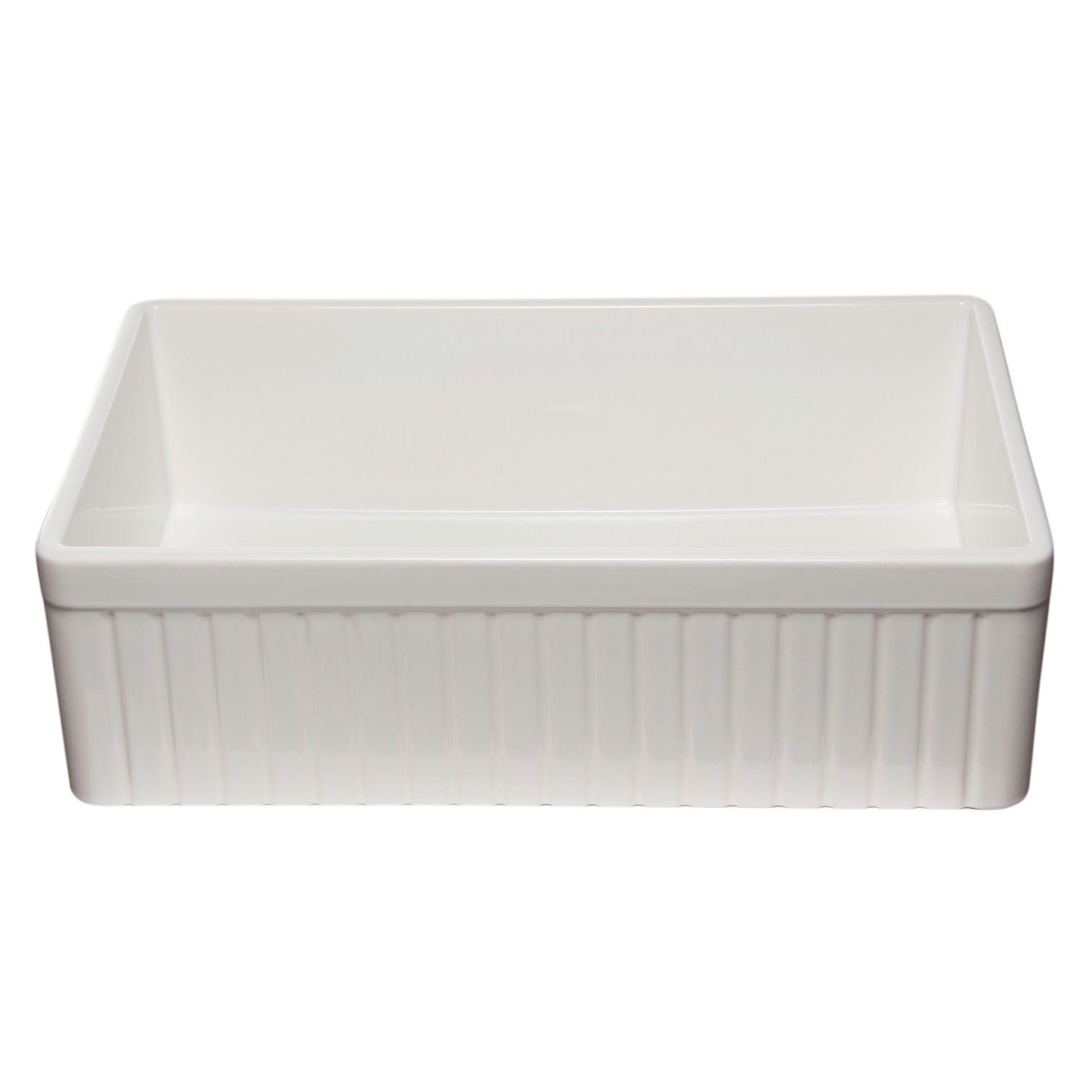 ALFI Brand AB532-W 33" White Single Bowl Fluted Apron Fireclay Farm Sink