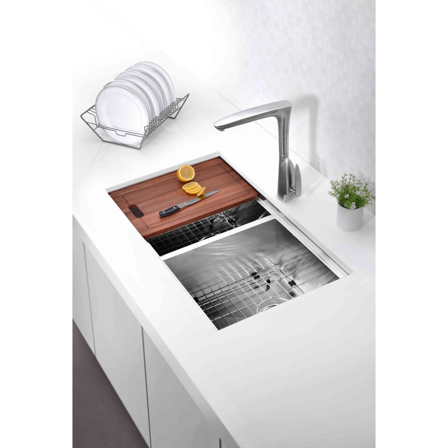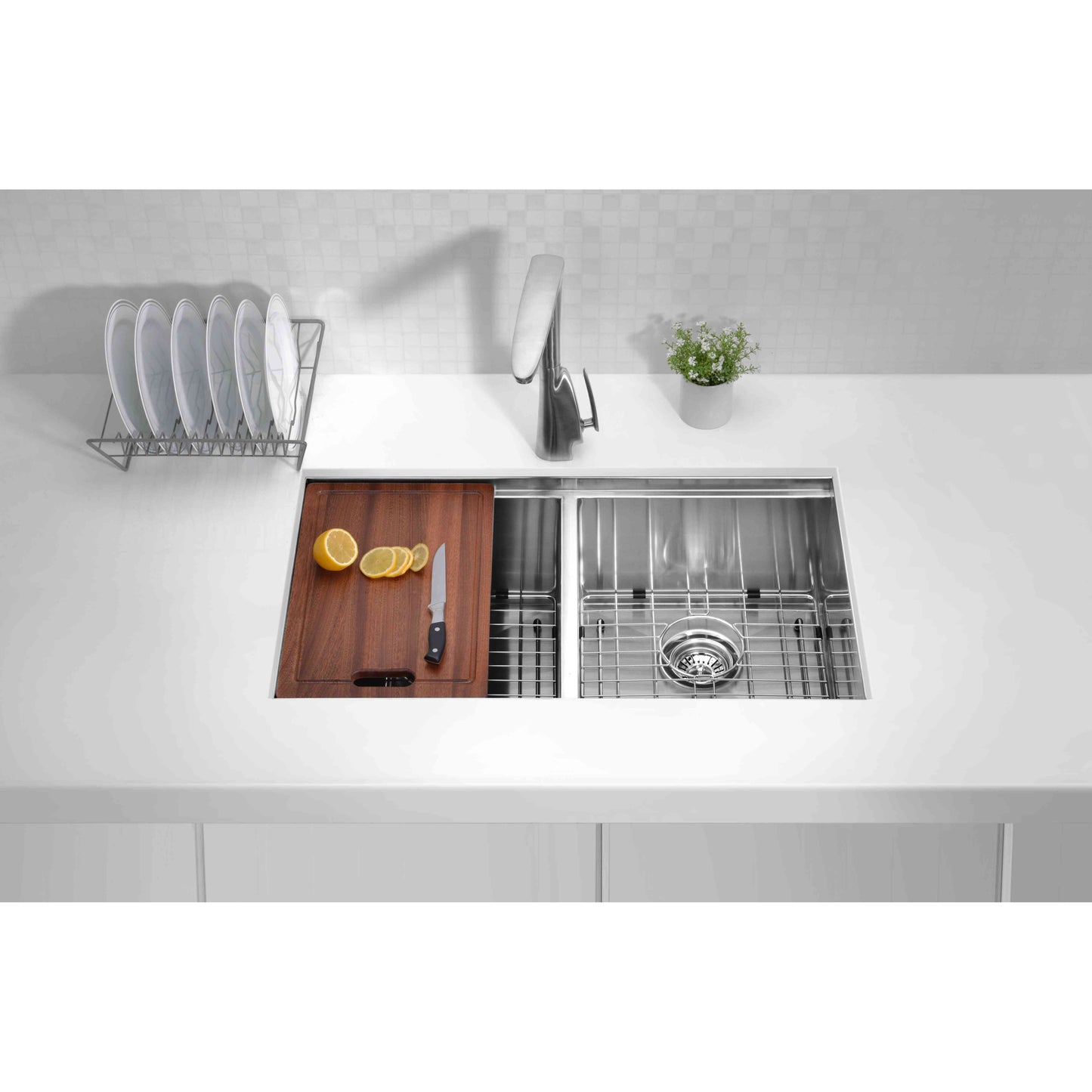 ANZZI Aegis Series 33" Double Basin 50/50 Stainless Steel Undermount Kitchen Sink With Cutting Board and Colander