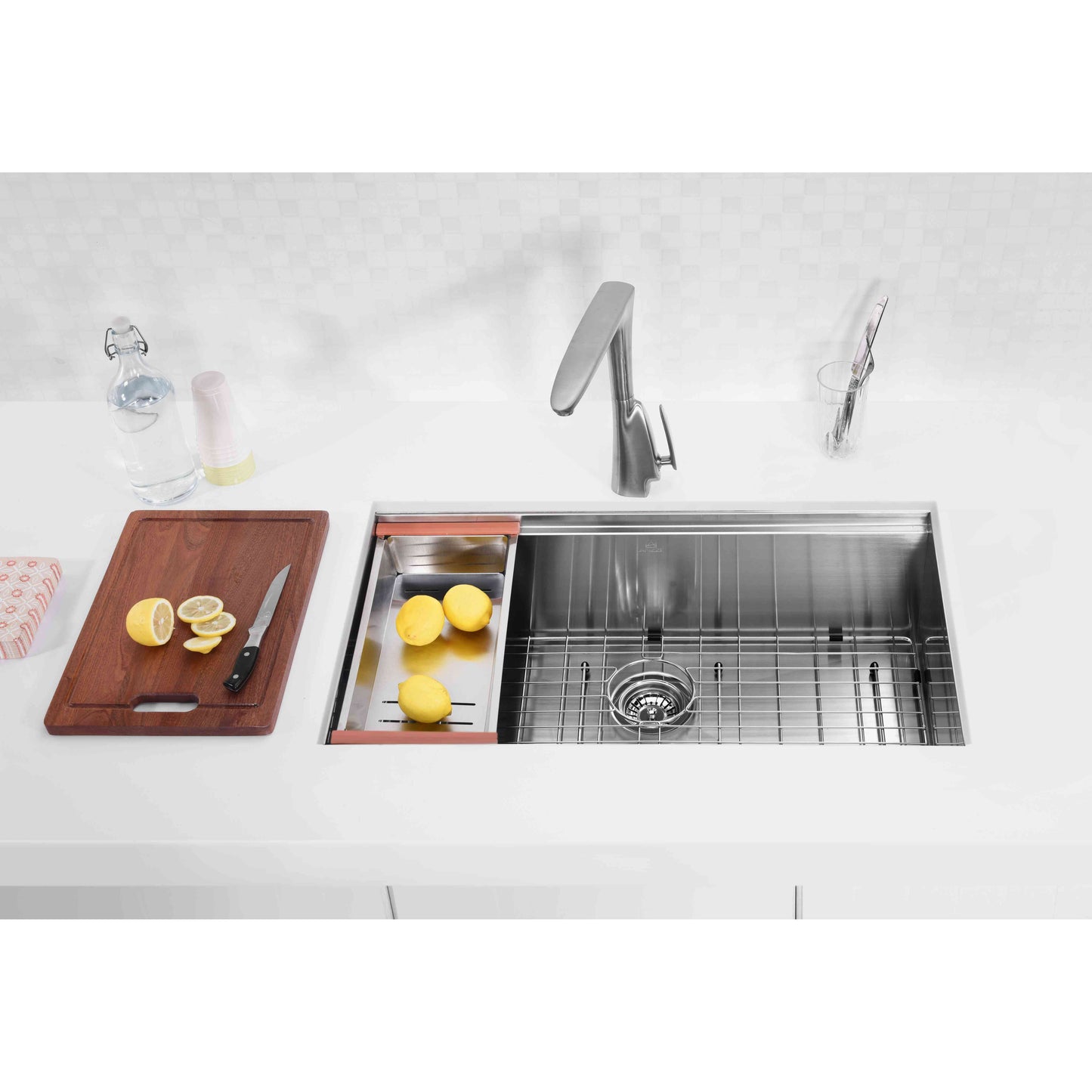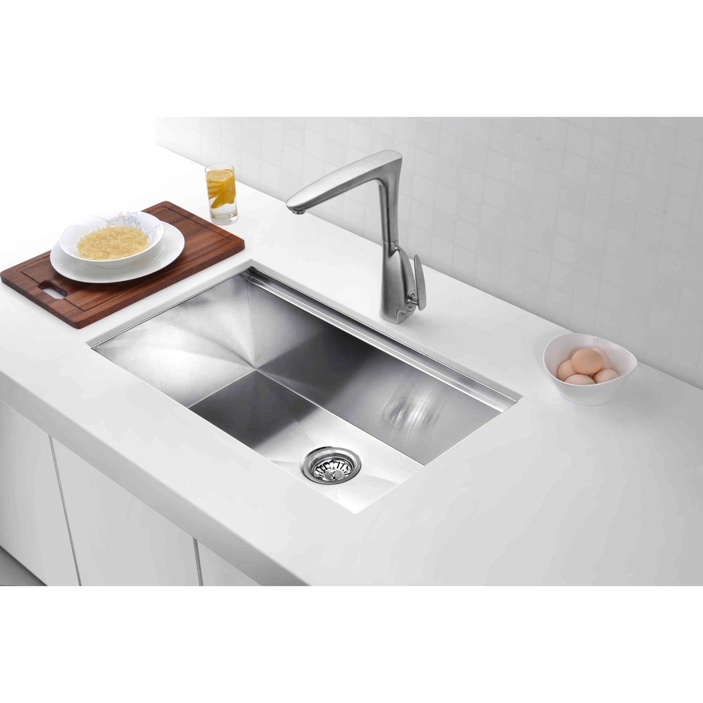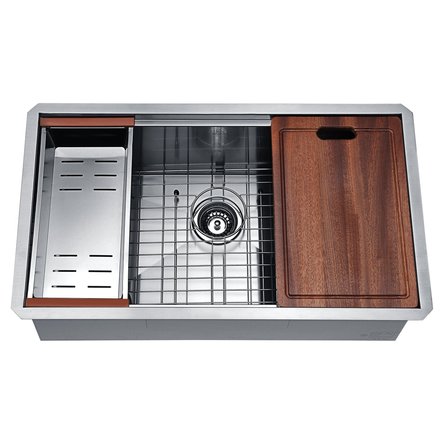ANZZI Aegis Series 33" Single Basin Stainless Steel Undermount Kitchen Sink With Cutting Board and Colander
