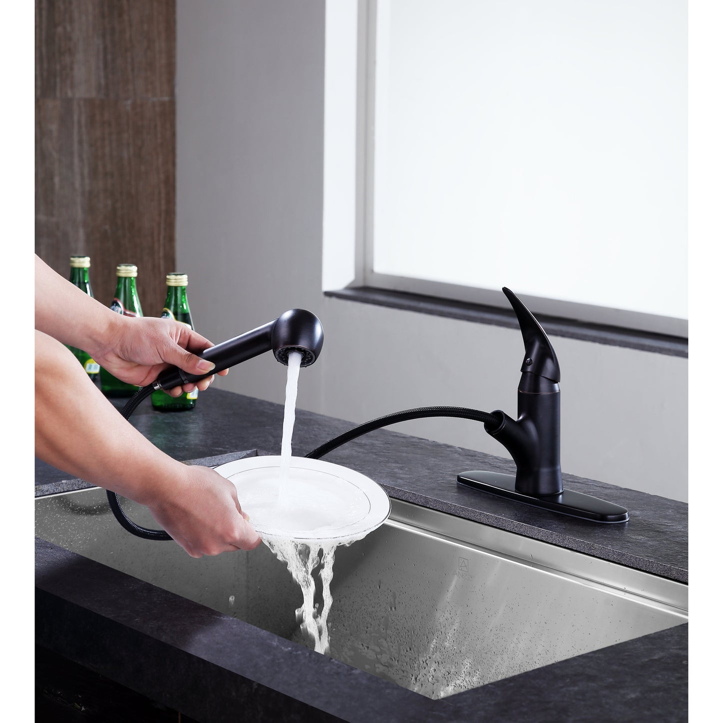 ANZZI Del Acqua Series Single Hole Oil Rubbed Bronze Kitchen Faucet With Euro-Grip Pull Down Sprayer