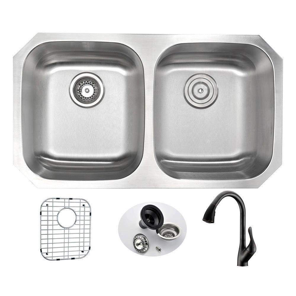 ANZZI Moore Series 32" Double Basin 50/50 Stainless Steel Undermount Kitchen Sink With Strainer, Drain Assembly and Oil Rubbed Bronze Accent Faucet