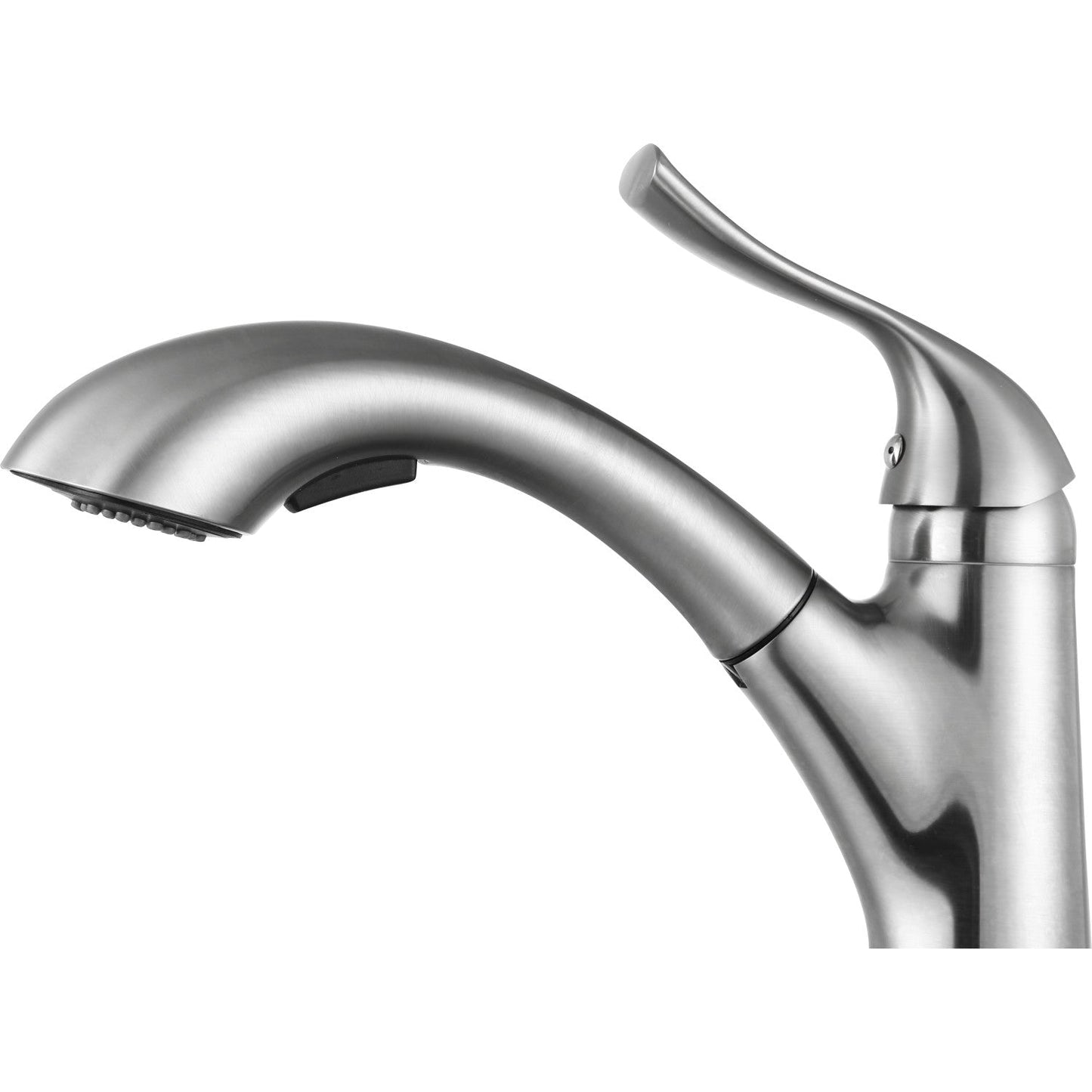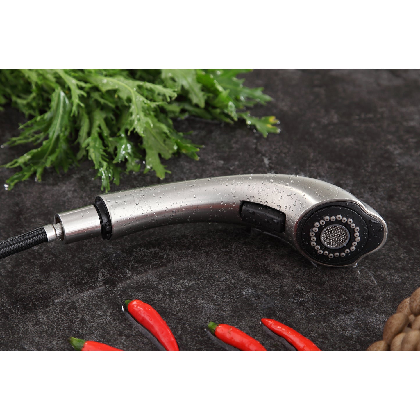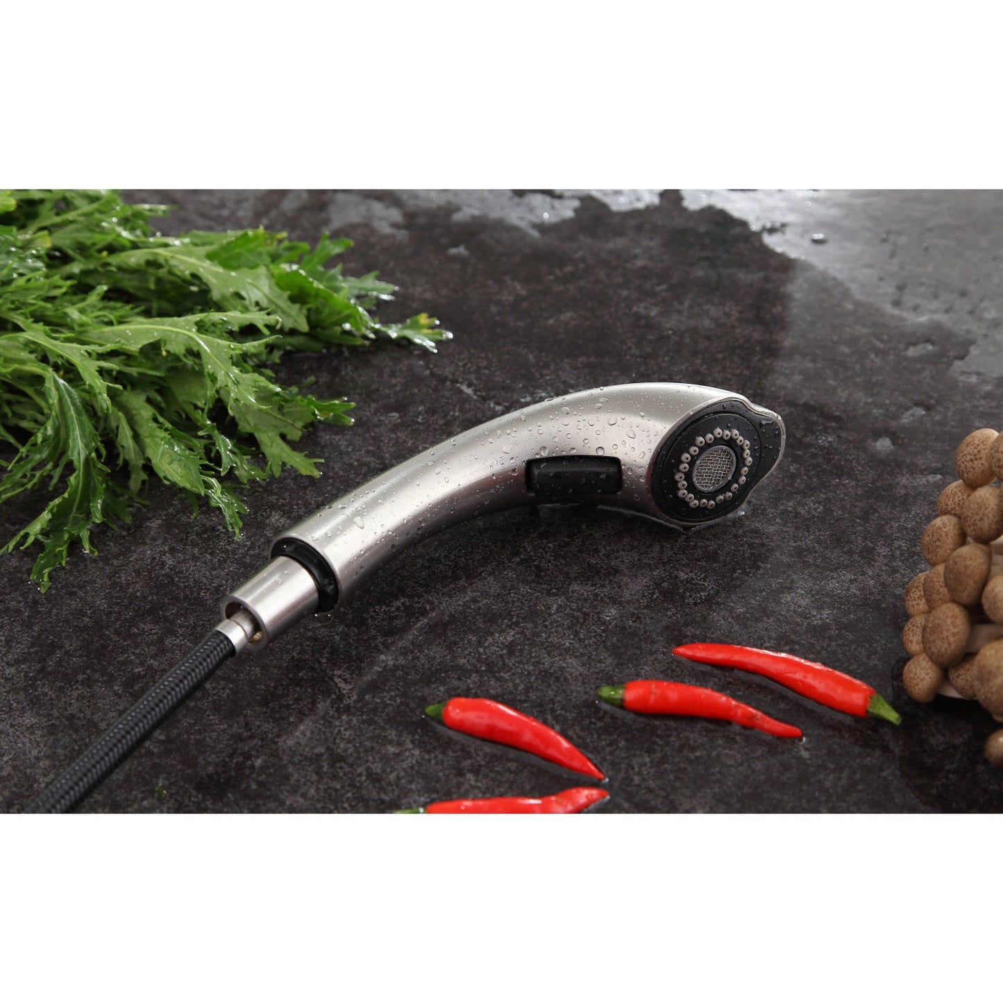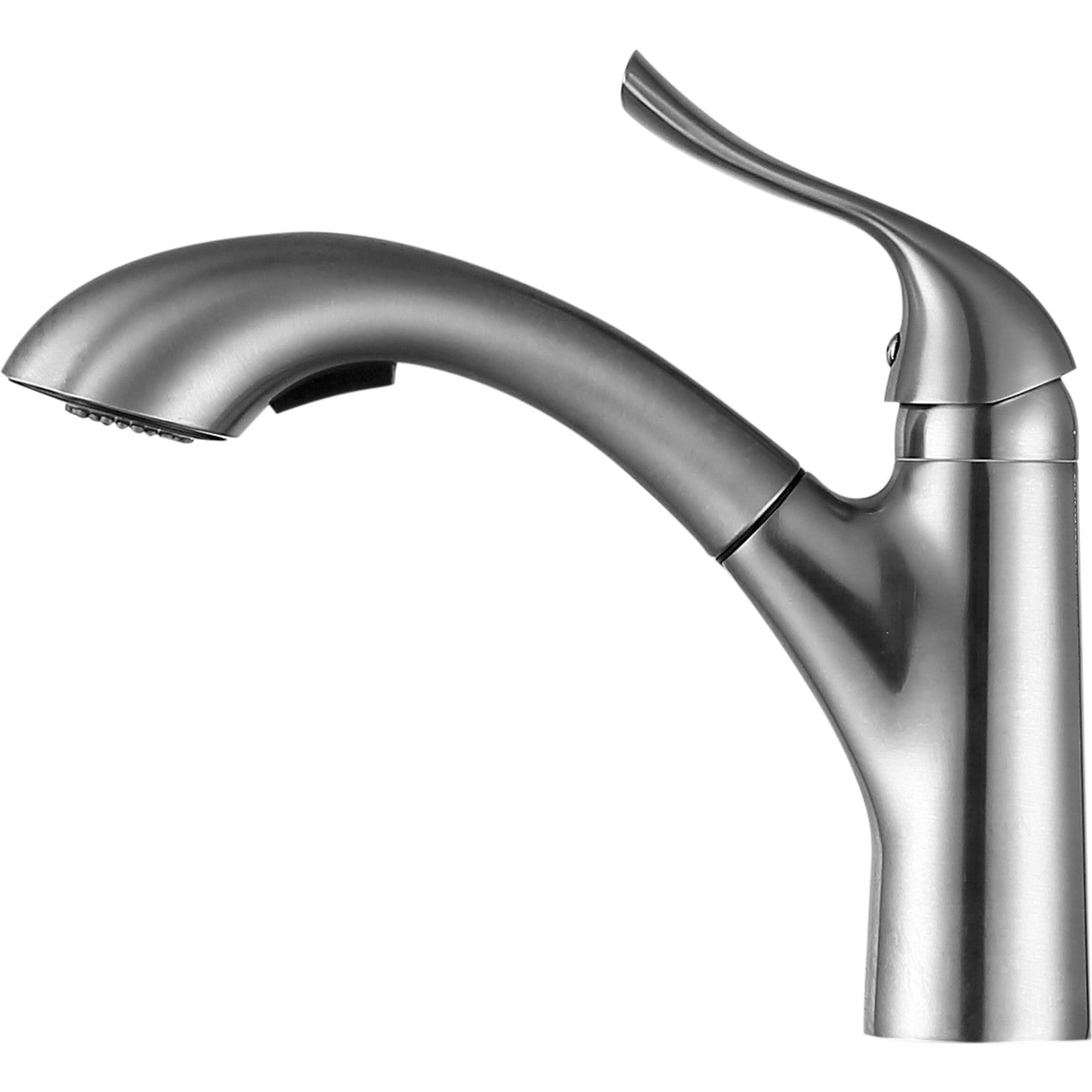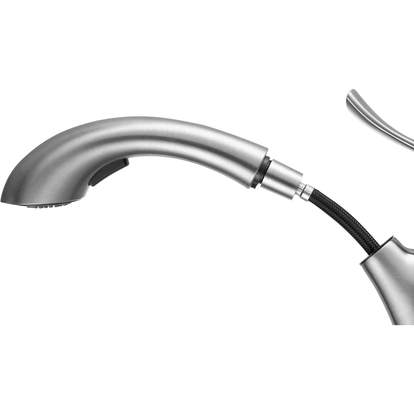 ANZZI Navona Series Single Hole Brushed Nickel Kitchen Faucet With Euro-Grip Pull Down Sprayer