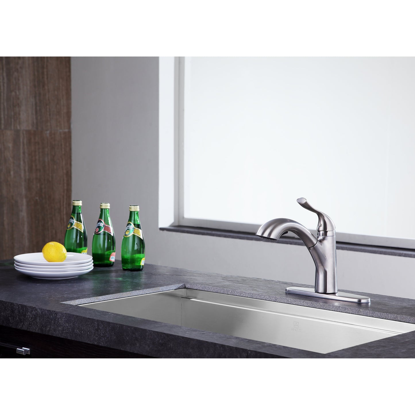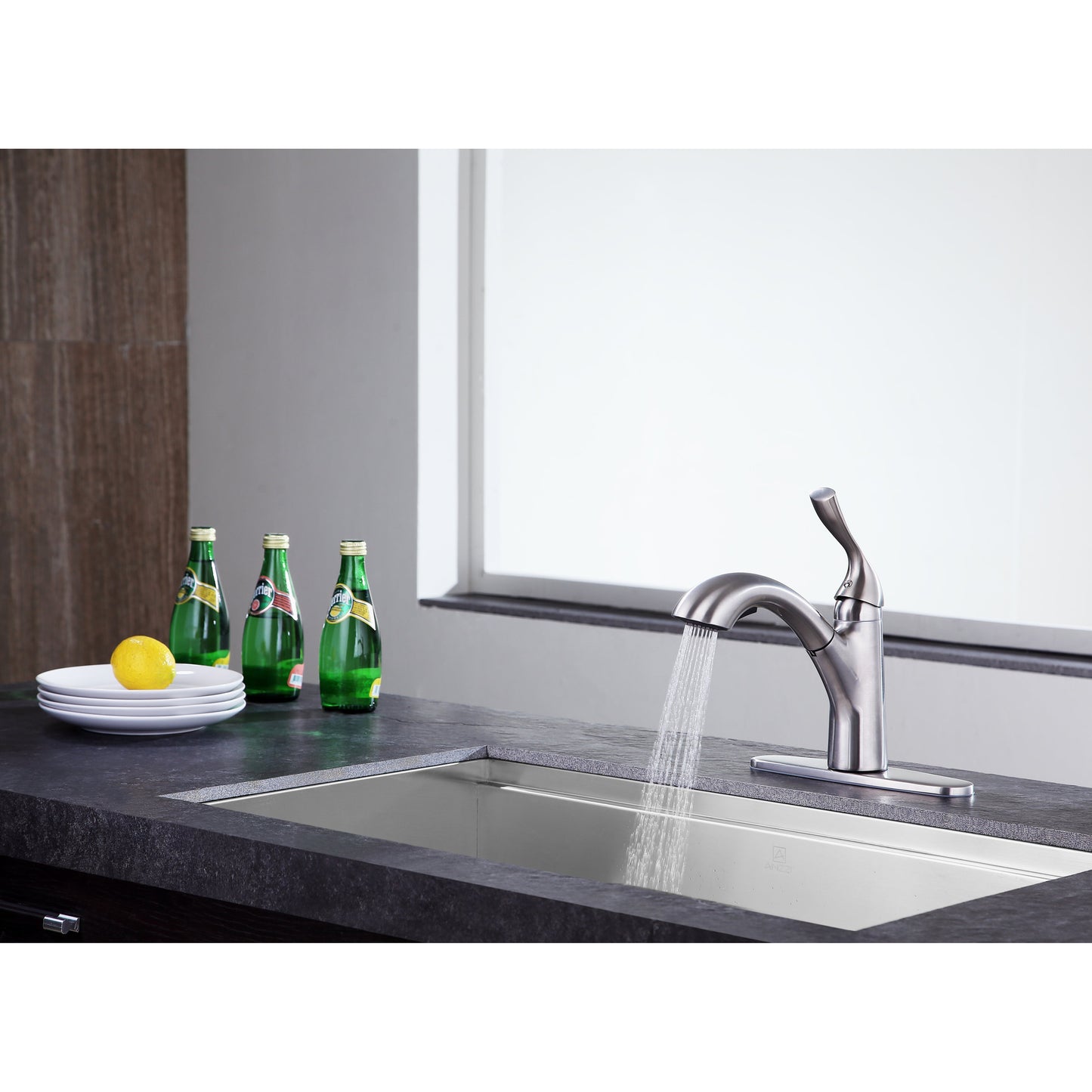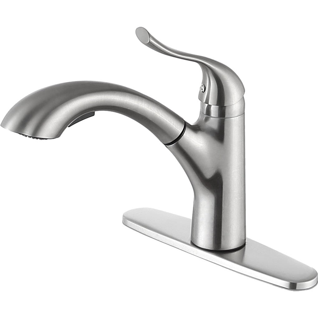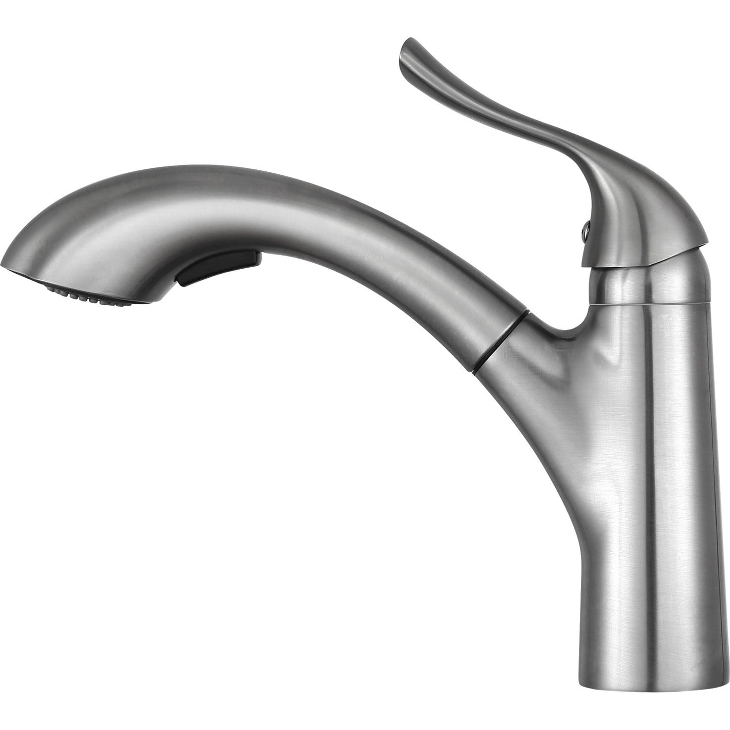 ANZZI Navona Series Single Hole Brushed Nickel Kitchen Faucet With Euro-Grip Pull Down Sprayer
