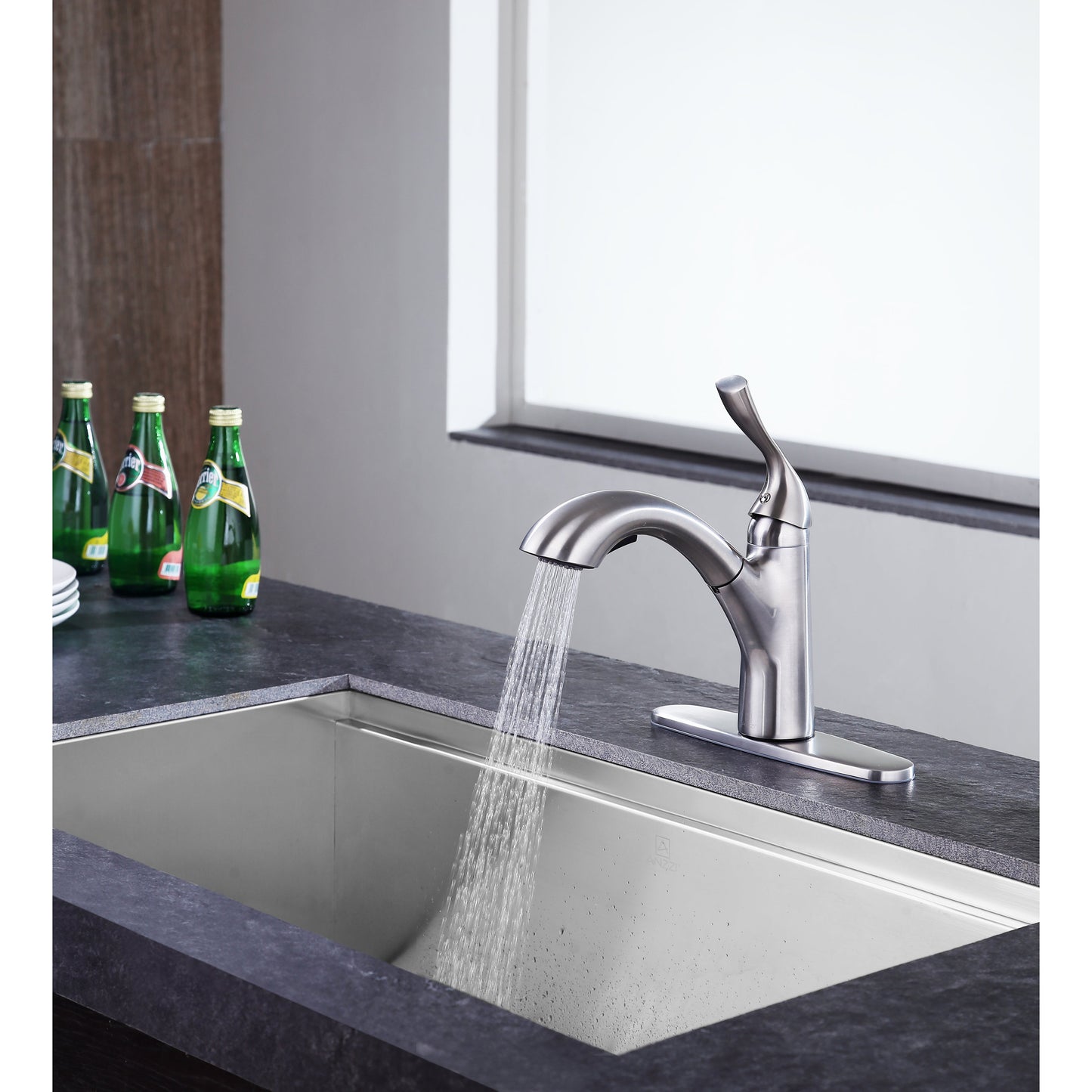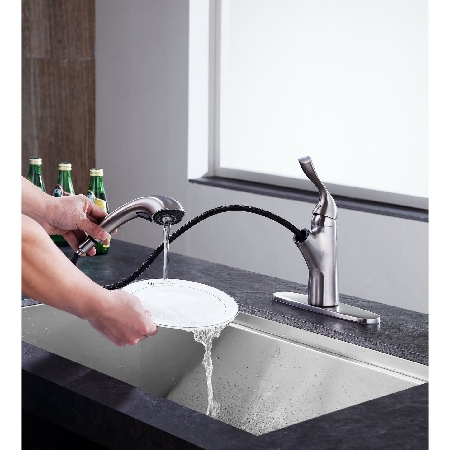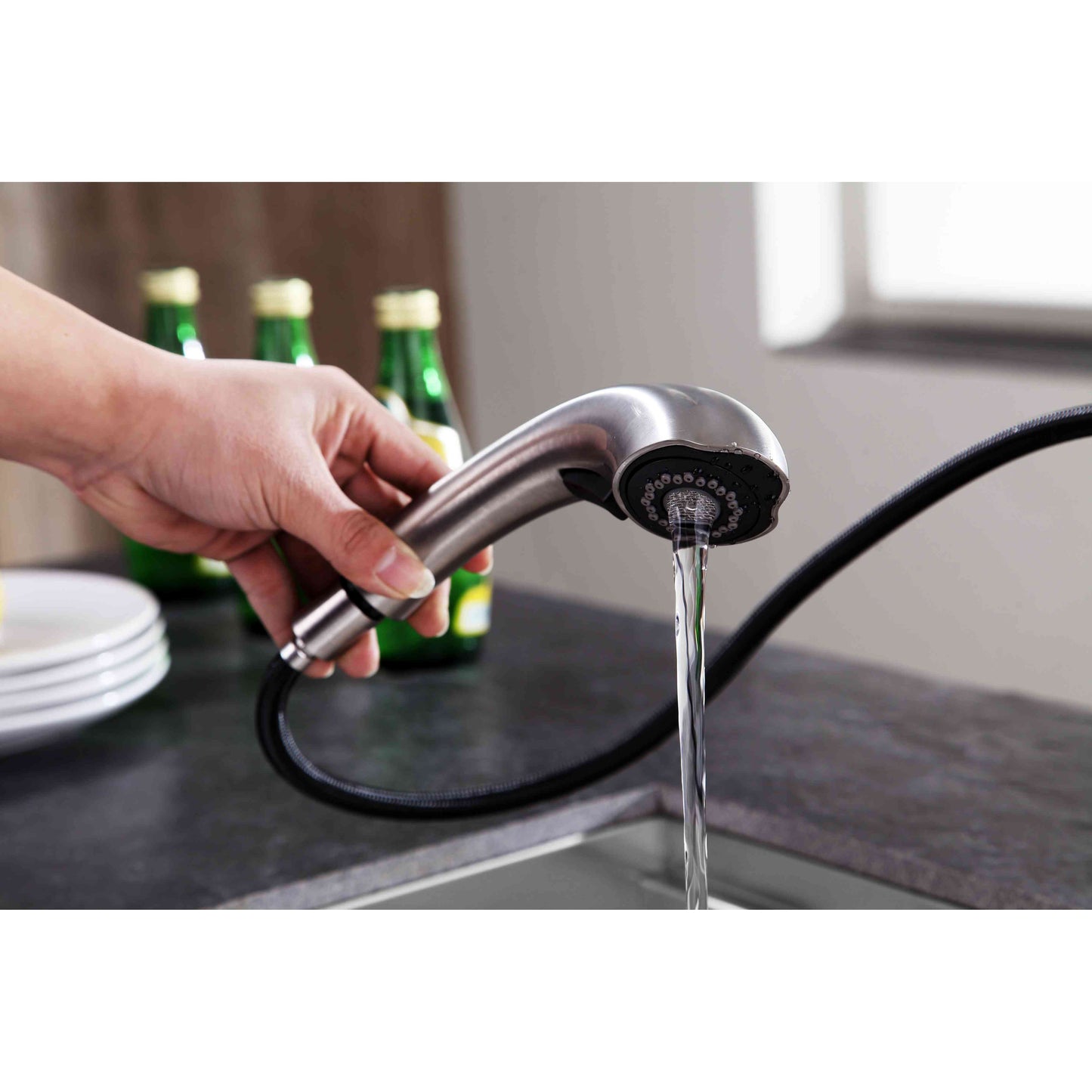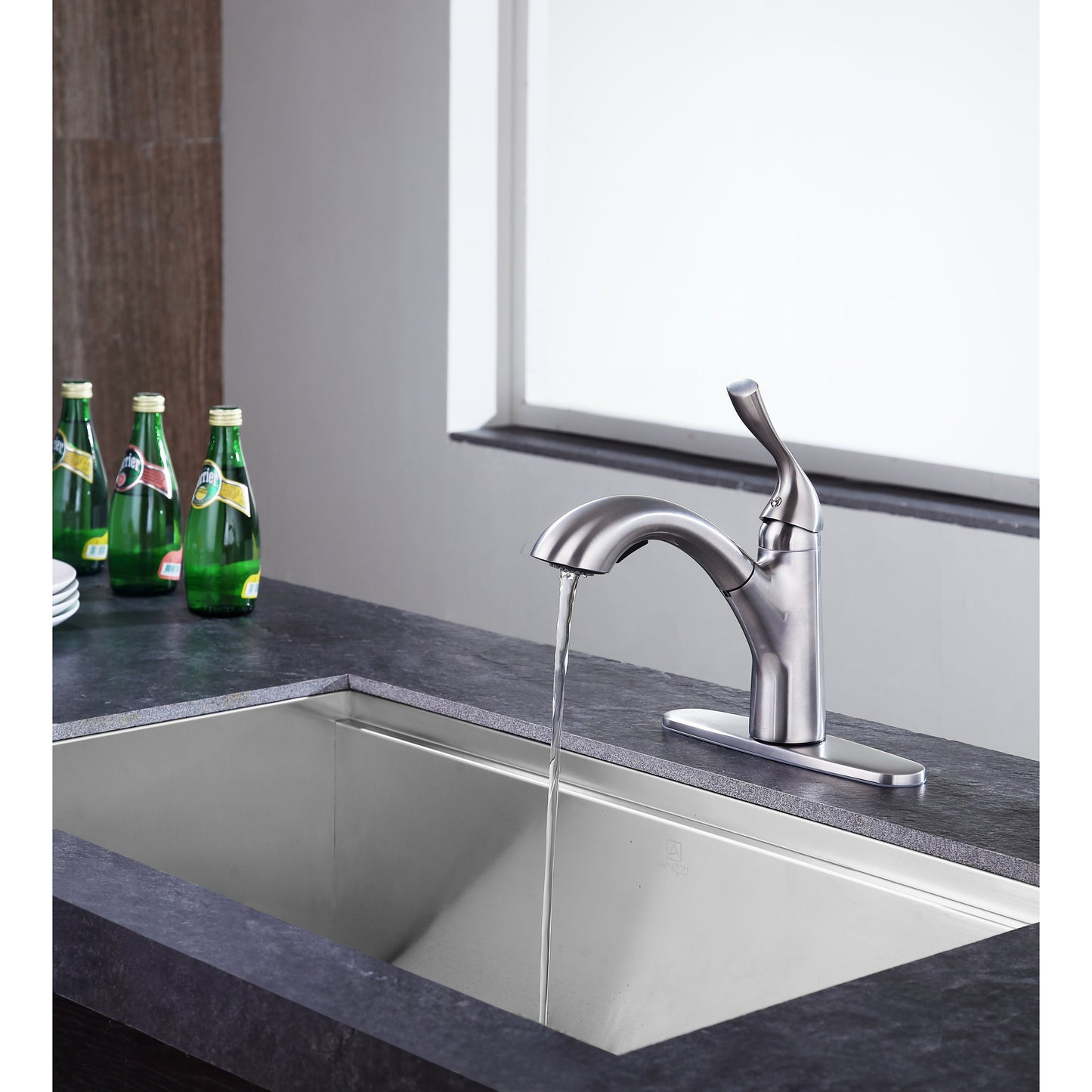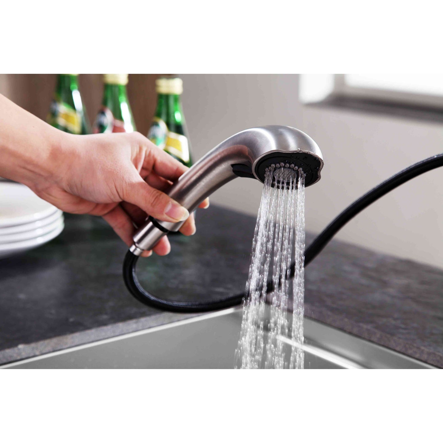 ANZZI Navona Series Single Hole Brushed Nickel Kitchen Faucet With Euro-Grip Pull Down Sprayer