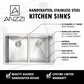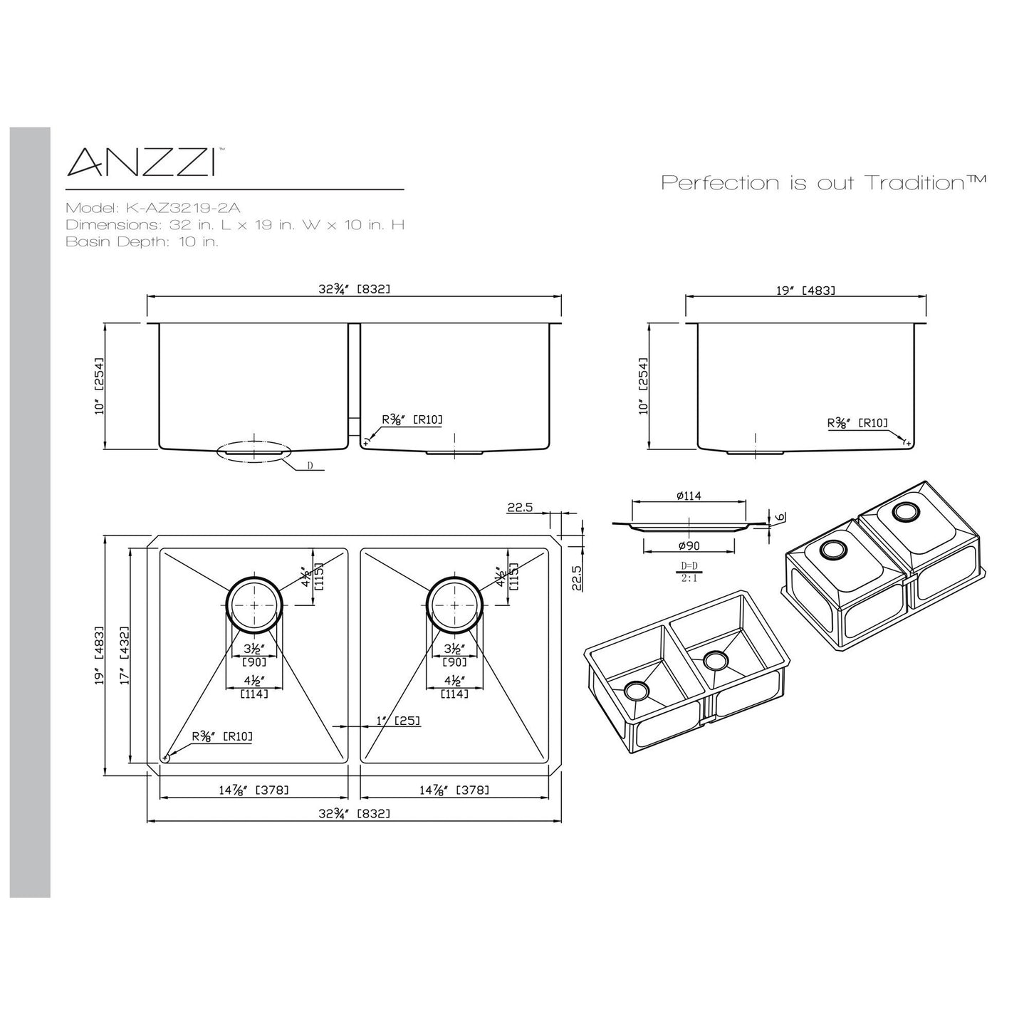 ANZZI presents the 32 inch VANGUARD SERIES hand crafted under mount kitchen sink. Representing the latest in modern home fixture designs and traditional European crafting technique this stunning display of artistry is hand shaped to perfection using RHINO ALLOY certified 16 gauge 304 stainless steel. Only ANZZI hand crafted kitchen sinks utilize RHINO ALLOY certified materials for superior strength and quality. The cavernous 50/50 deep soaking dual basin will comfortably accommodate the largest dish loads including pots, pans and more. And every ANZZI sink features the largest Echo-STOP sound dampening pads available and a layer of protective composite coating to further quiet noise and prevent condensation. Well defined diversion lines ensure quick and total water drainage and the subtly curved corners allow of easier cleaning. ANZZI carries a proud tradition of crafting long lasting, quality home fixtures. With ANZZI perfection is our tradition.