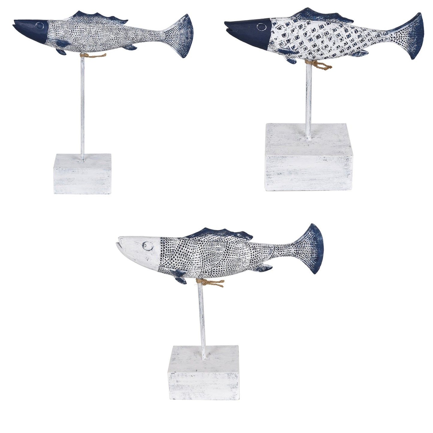 Crestview Collection 12" & 10" & 8" 3-Piece Coastal Resin Antique Fish Statues In Blue and White Finish