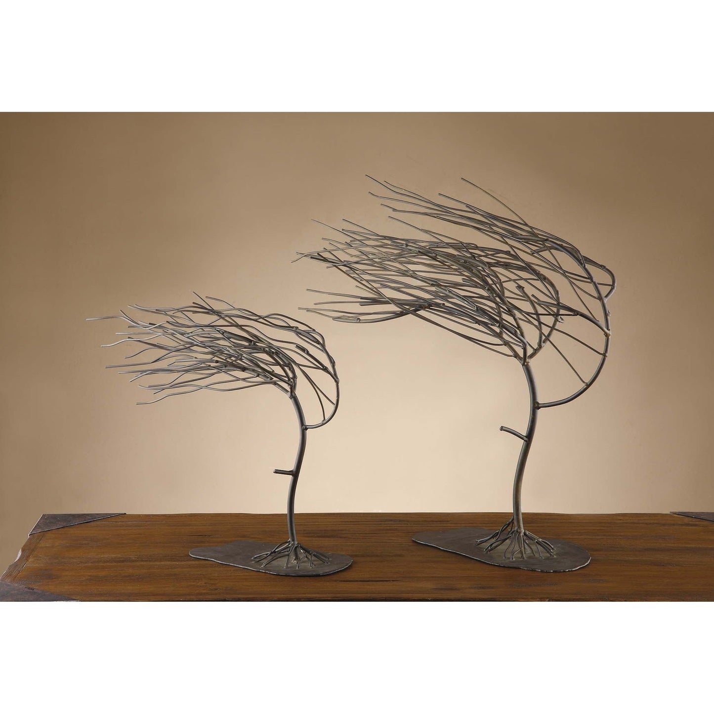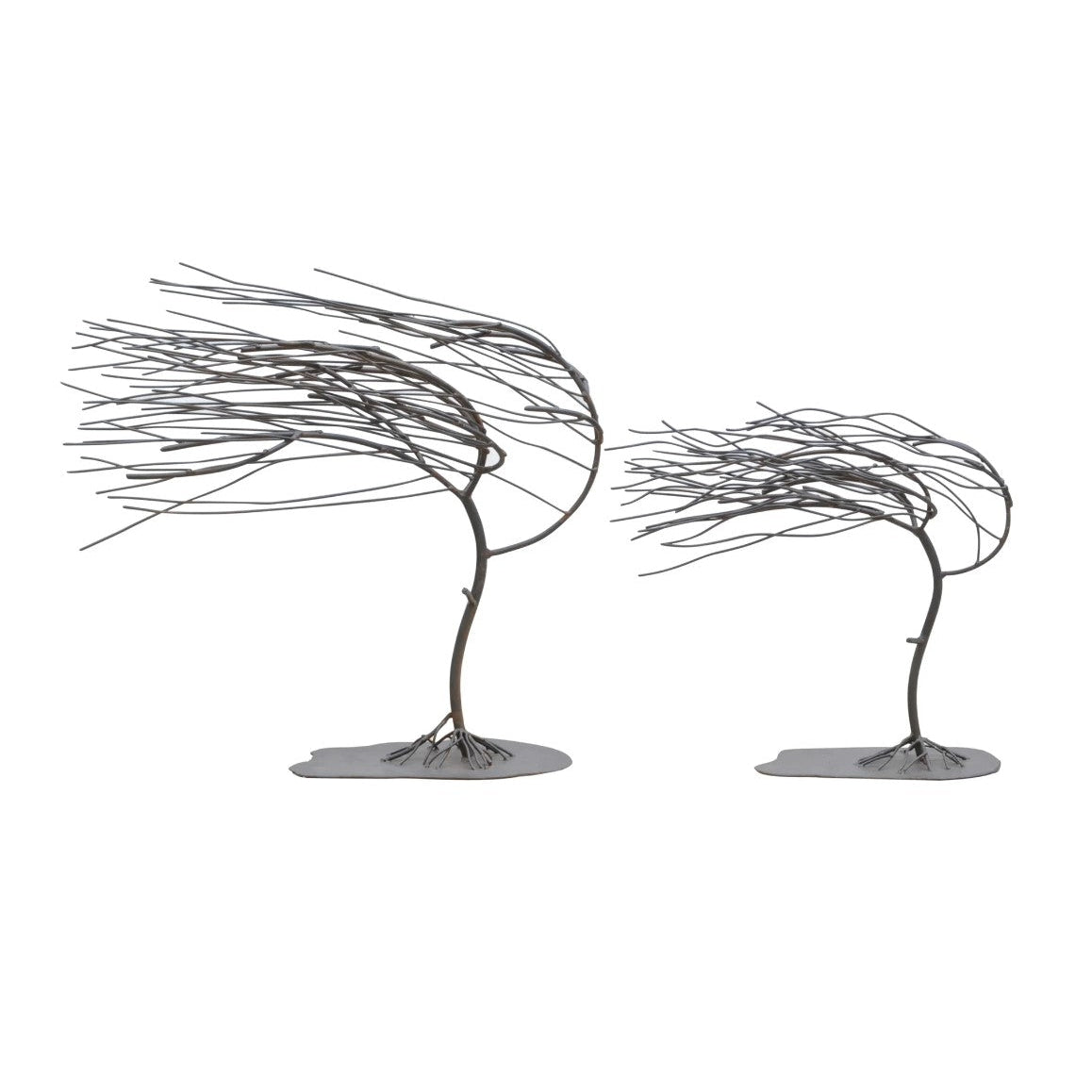The Crestview Collection Windy Woods Tree Sculptures come in a set of two and are made from durable metal. The roots of the trees cling to the ground as the tops of the leafless trees are bent and blown to their very limit. This sculpture is a true depiction of one of the strongest forces of nature and the strength of the roots of the tree. These sculptures will add interest to your rustic home decor.