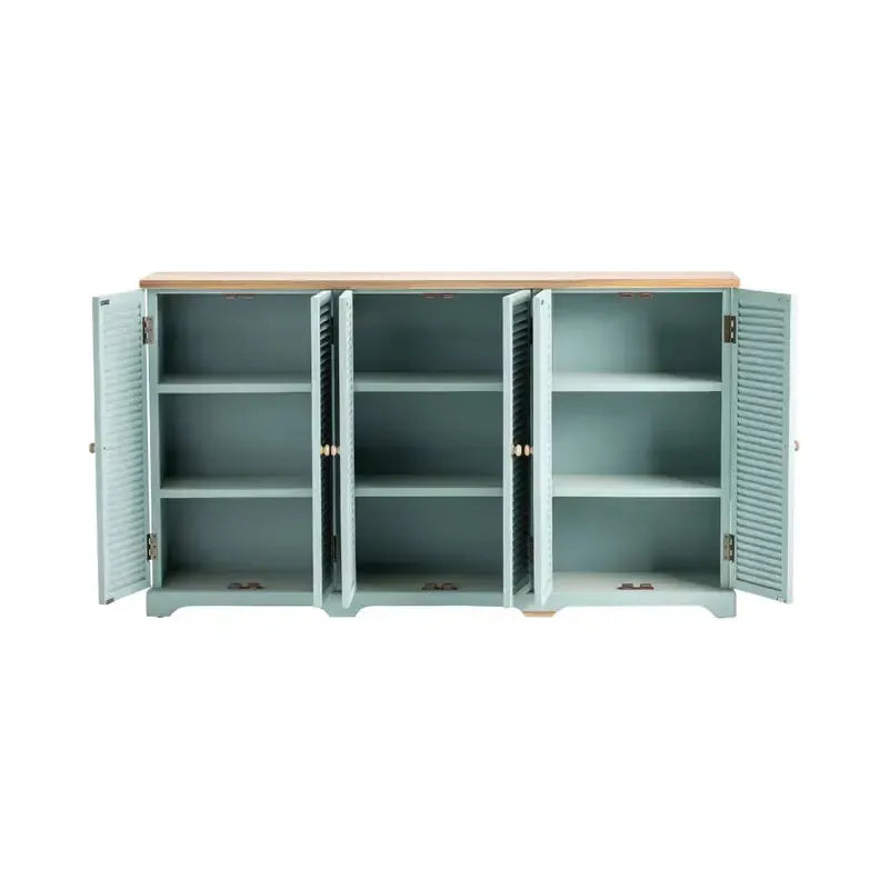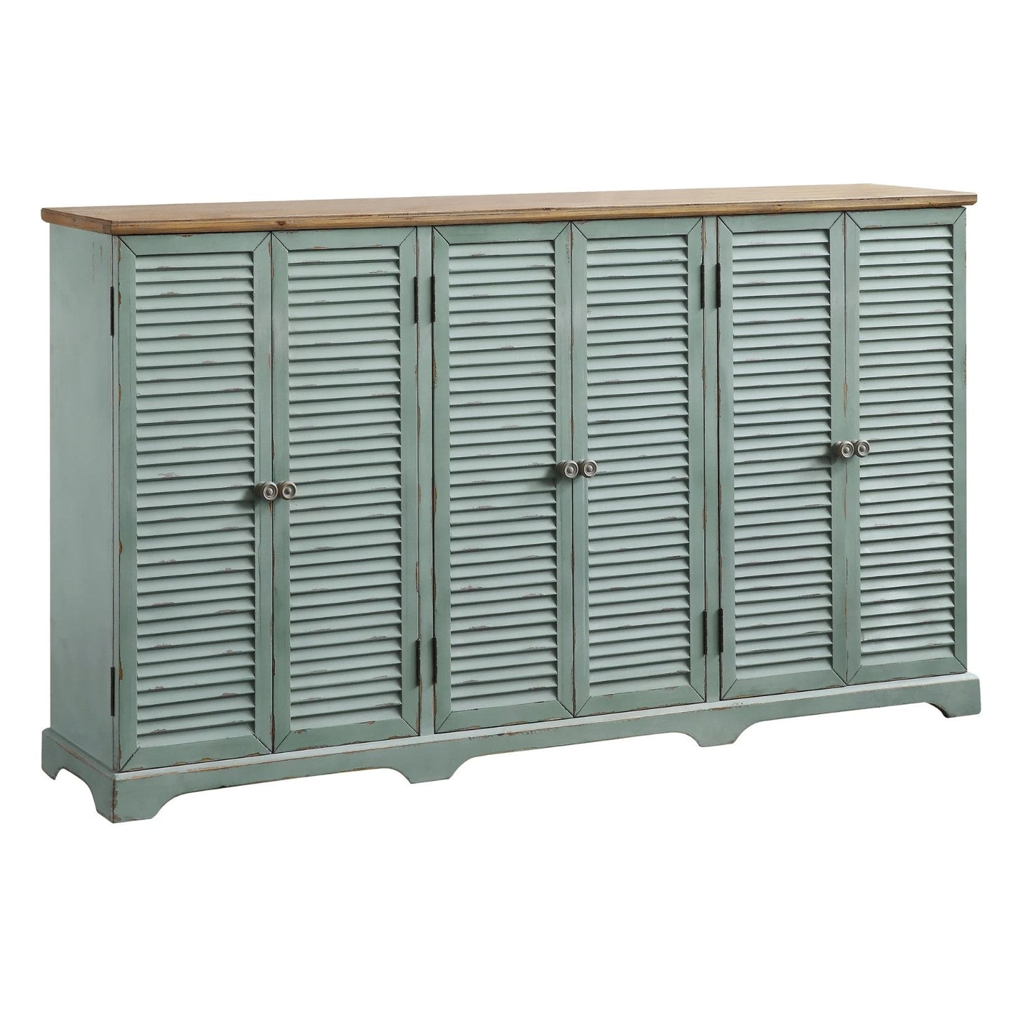 Crestview Collection Clearwater 63" x 12" x 36" 6-Louvered-Door Coastal Blueish Gray Wood Sea Wash Sideboard With Wood Top