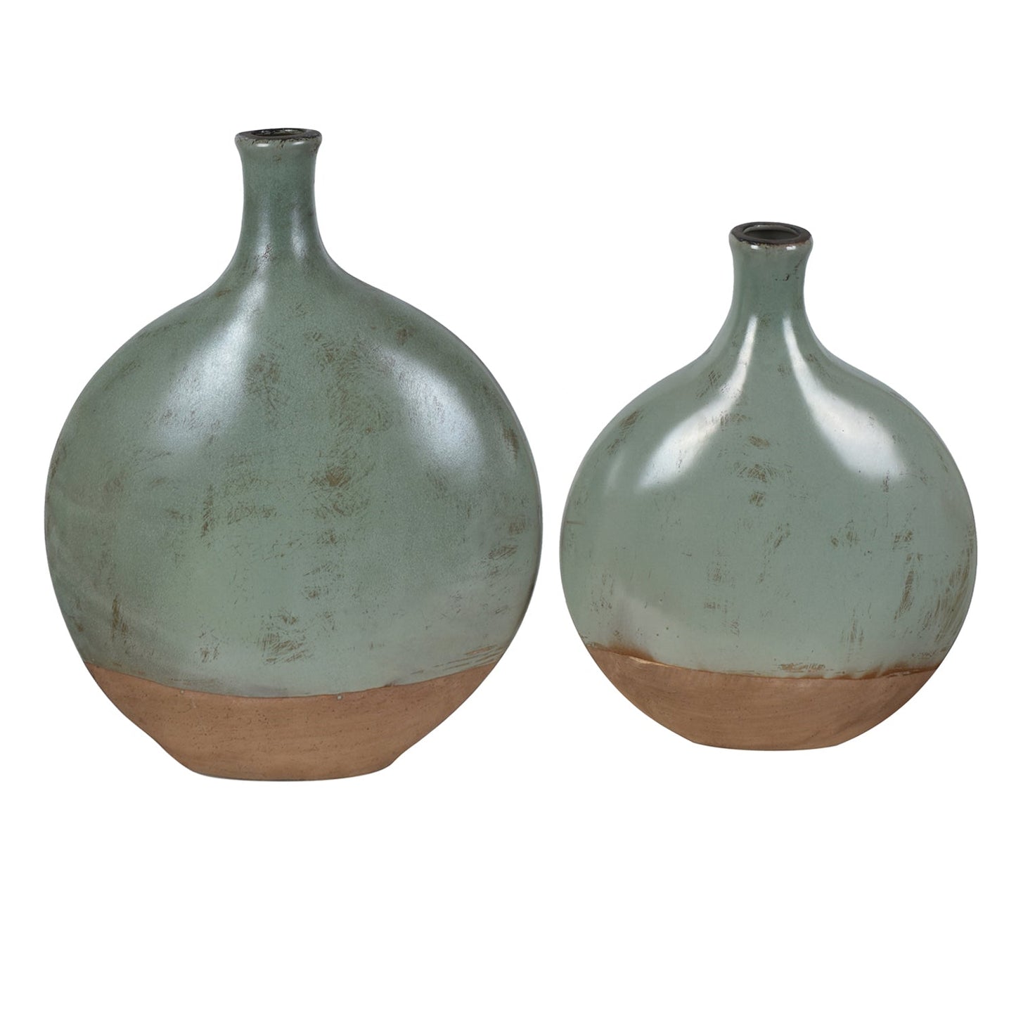 Crestview Collection Dunleaf 16" & 13" 2-Piece Traditional Ceramic Oval Vase In Artichoke Green Finish