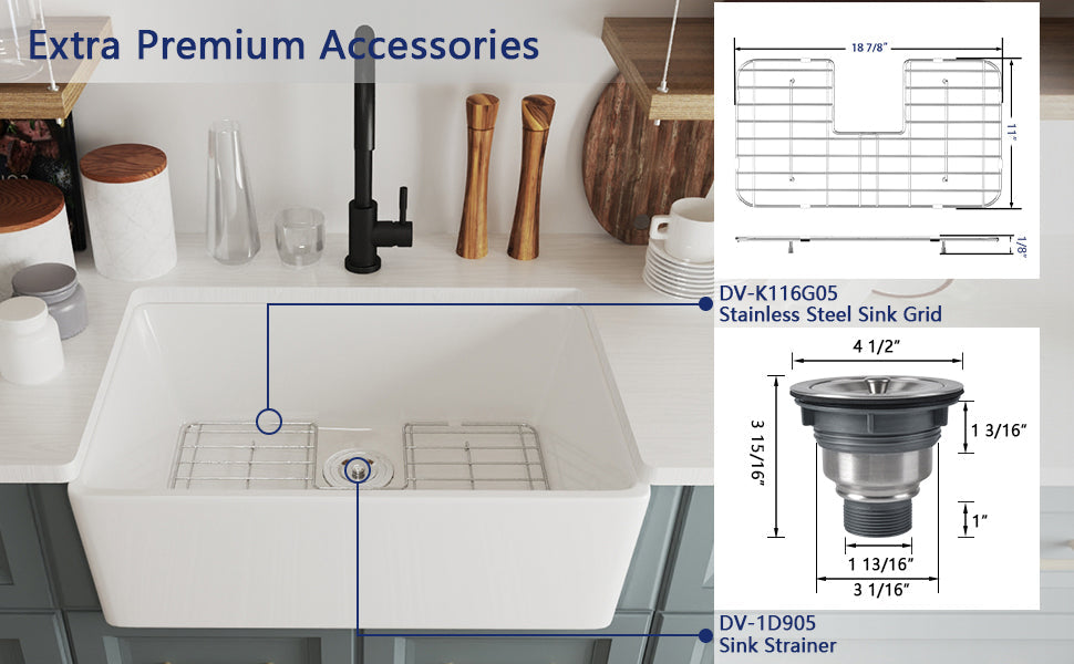 DeerValley gives a well-designed ceramic kitchen sink to your kitchen. This kitchen sink is both apply for hone and commercial use. The apron front design definitely will become the centerpiece of any kitchen, the timeless design is in line with the decade years aesthetic. This kitchen sink was made from high-quality porcelain, smooth surface non-porous, scratch-resistant is it's characteristic. It has the quality of being durable, has no chance to get cacked, discolored, and rusted.