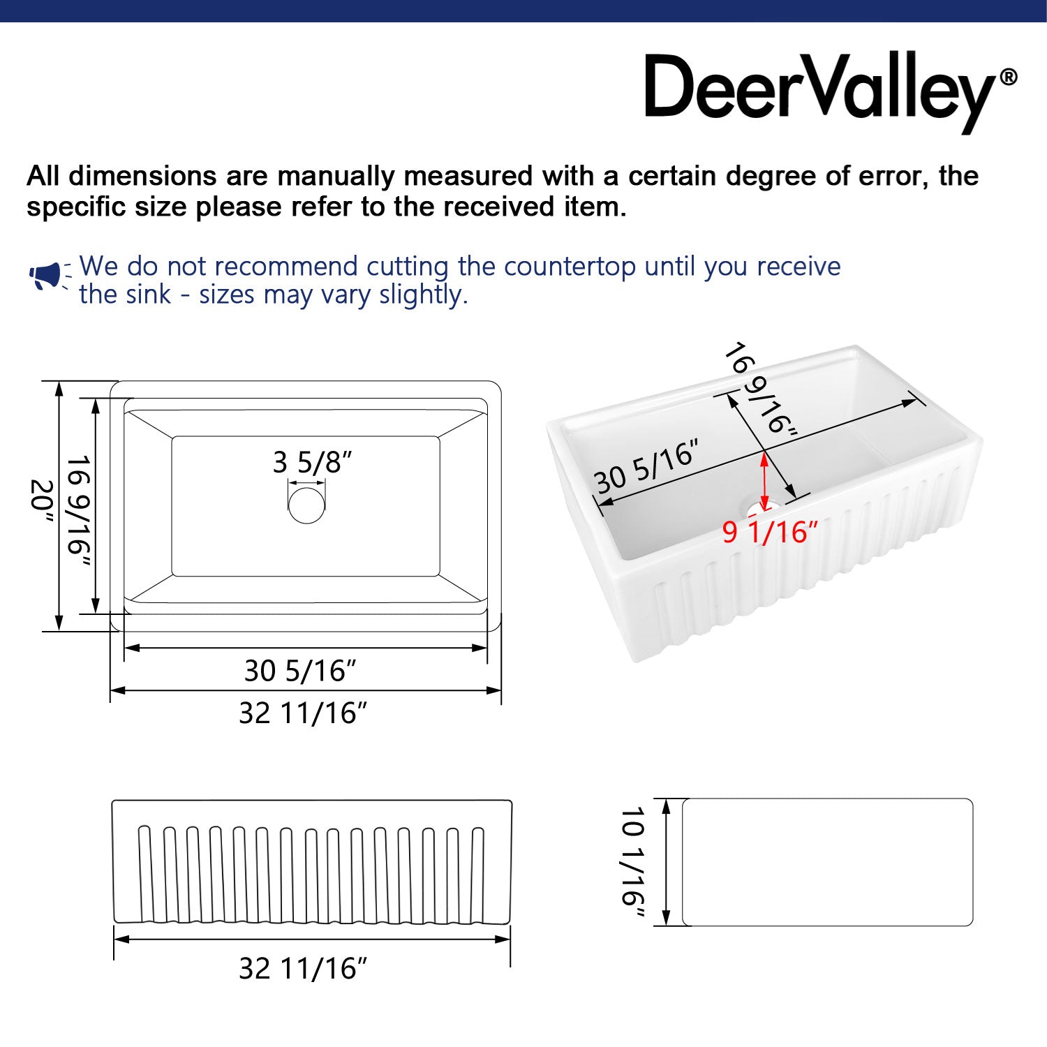 DeerValley products are made with quality materials and excellent craftsmanship to provide the customers a long-lasting product. in the case of any defects in materials or craftsmanship under regular use were inspected in the first one year of delivery, DeerValley will provide replacement parts at no charge, or at its option, replace any product or part of the product that is deemed defective, under normal installation, use, service, and maintenance. This warranty applies only to the original purchaser. Proof of purchase will be required in the case of a claim. SCRATCHES ARE NOT COVERED UNDER WARRANTY.