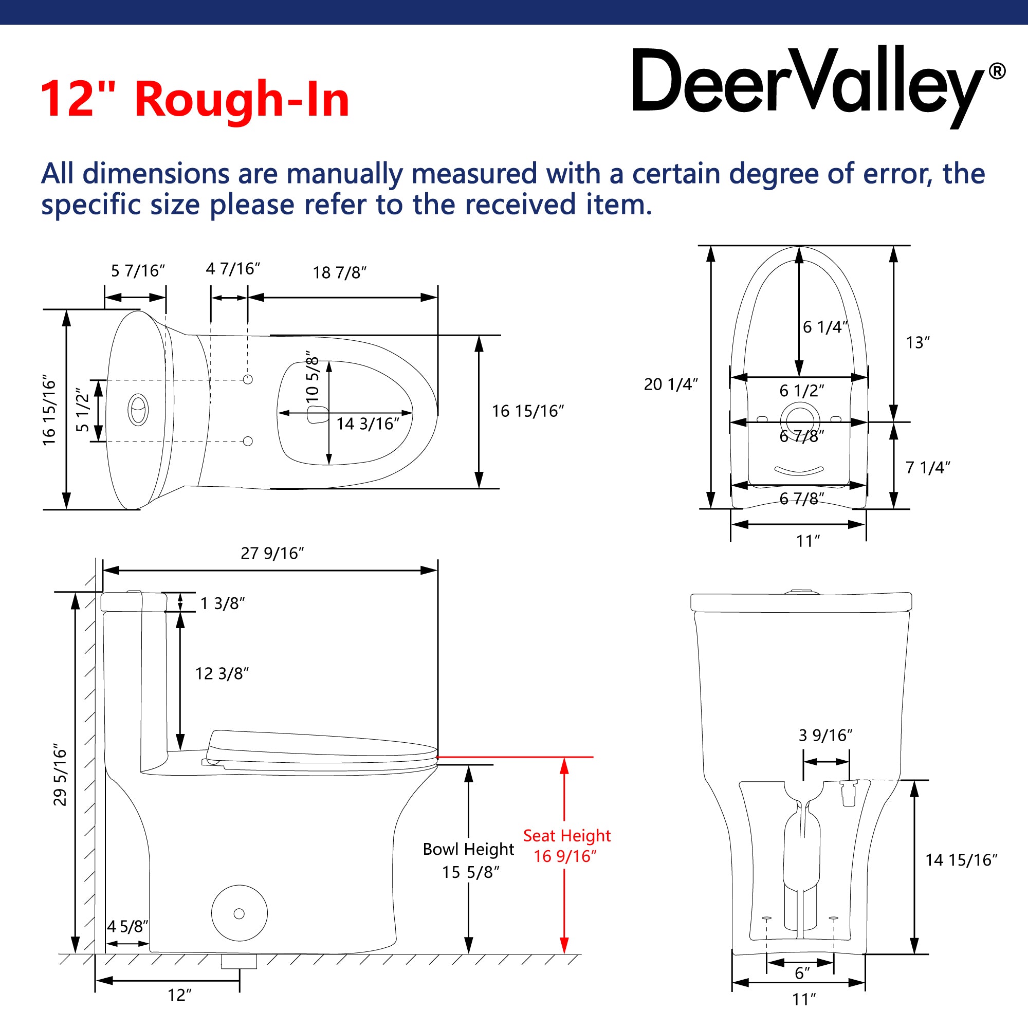 DeerValley Horizon 12" Rough-in Dual-Flush Elongated White One-Piece Toilet