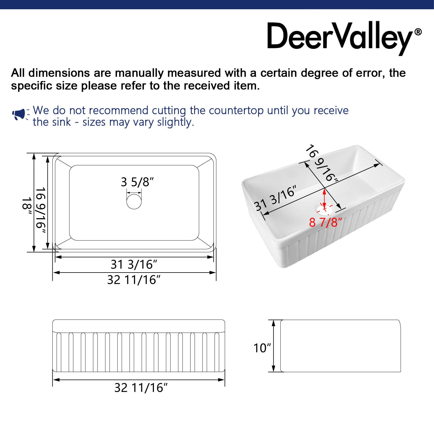 DeerValley products are made with quality materials and excellent craftsmanship to provide the customers a long-lasting product. in the case of any defects in materials or craftsmanship under regular use were inspected in the first one year of delivery, DeerValley will provide replacement parts at no charge, or at its option, replace any product or part of the product that is deemed defective, under normal installation, use, service, and maintenance. This warranty applies only to the original purchaser. Proof of purchase will be required in the case of a claim. SCRATCHES ARE NOT COVERED UNDER WARRANTY.