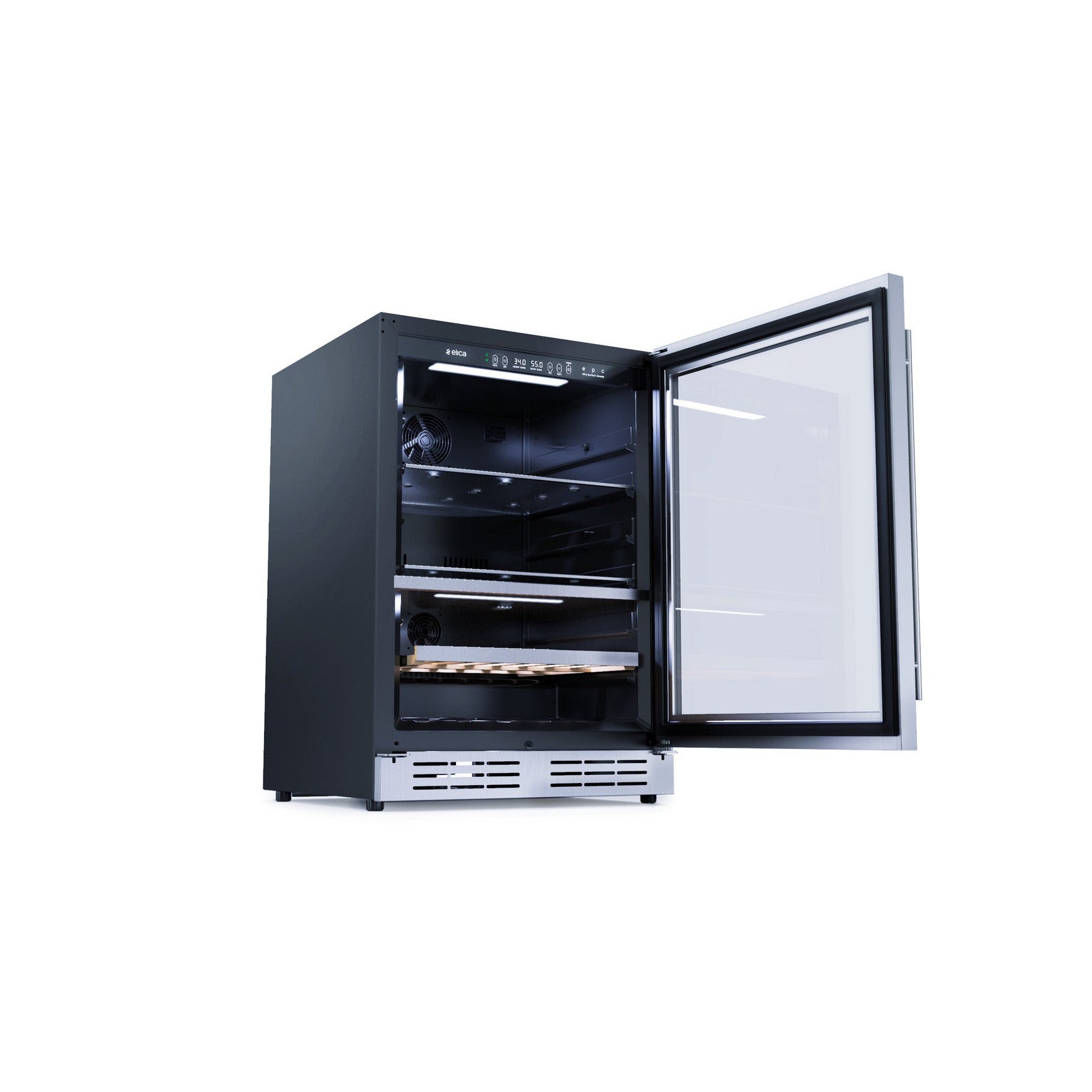 A brilliant solution that meet all your needs, RISERVA - EBS52SS1 24”, features two different cooling zones, adjustable to different temperatures to preserve a variety of beverages and wines to their optimum freshness. Its UV double layered resistant Glass Door shields bottles from aging, while Elica´s Perfect Climate technology (EPC) ensures a consistent air flow between bottles for optimum preservation.