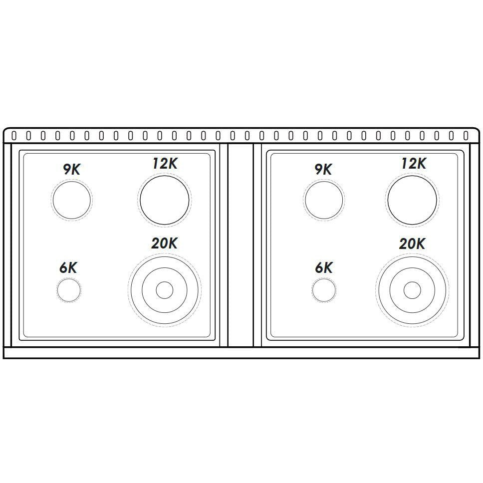 - Burner/Element Output 4 Dual Burner, 20,000 BTU