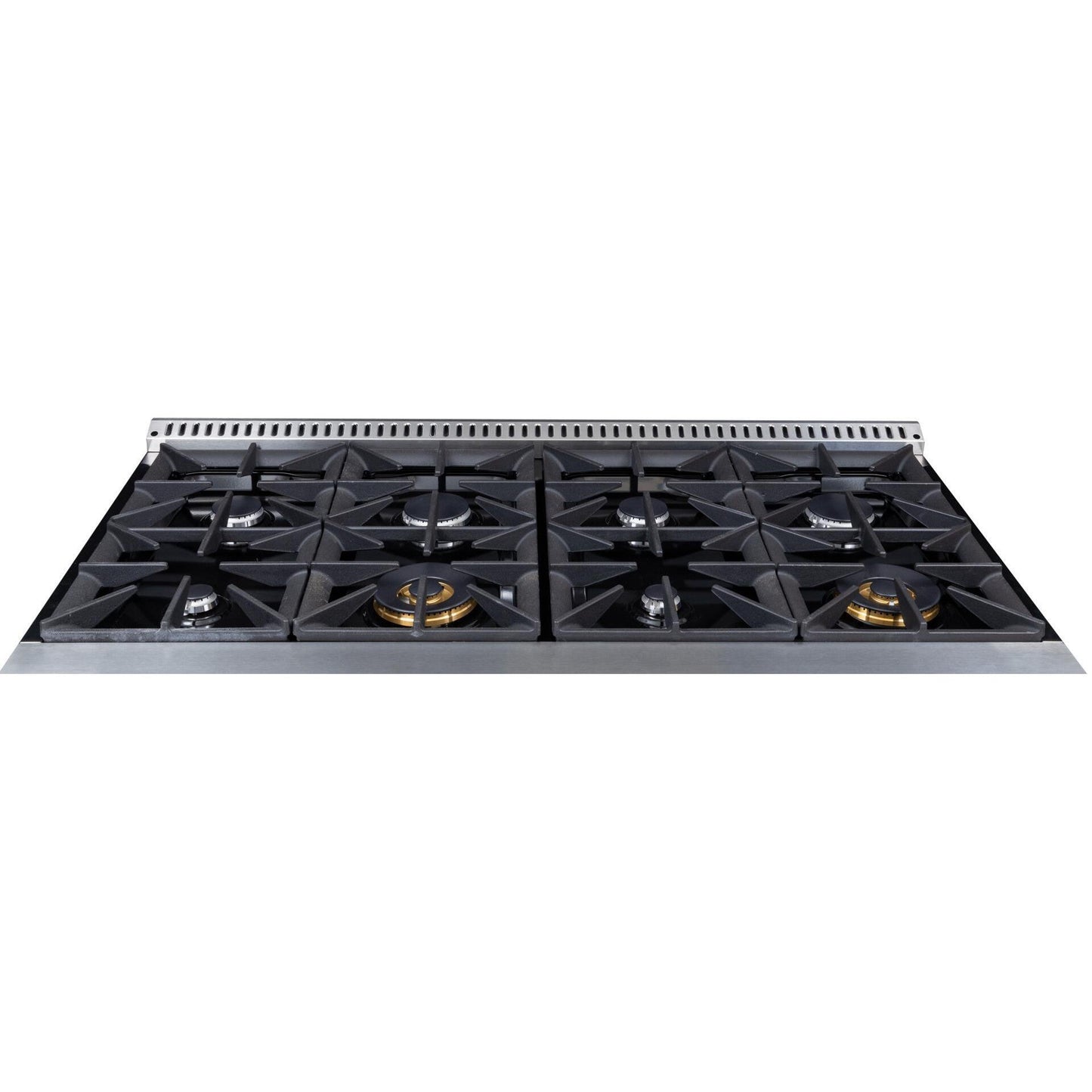 The 48" Freestanding Gas Range by Forte comes with 8 Sealed Burners and 5.53 cu. ft. Dual Oven Total Capacity. It also features Precise Temperature System, Edge to Edge Grates, Easy Glide Oven Racks, 10K BTU Broiler and is LP Convertible.