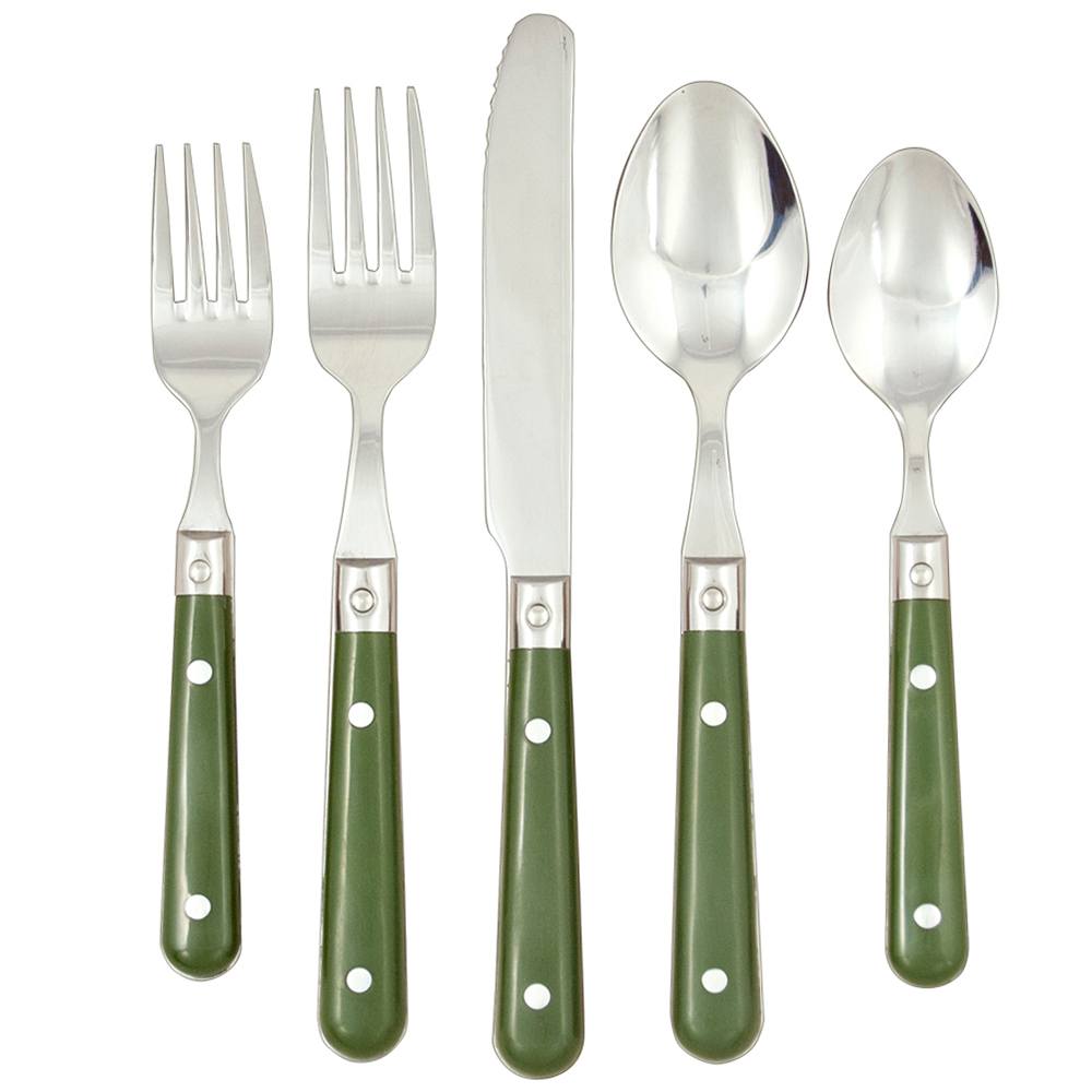 Ginkgo International Stainless Collection 20-Piece LePrix Moss Green Flatware Set
