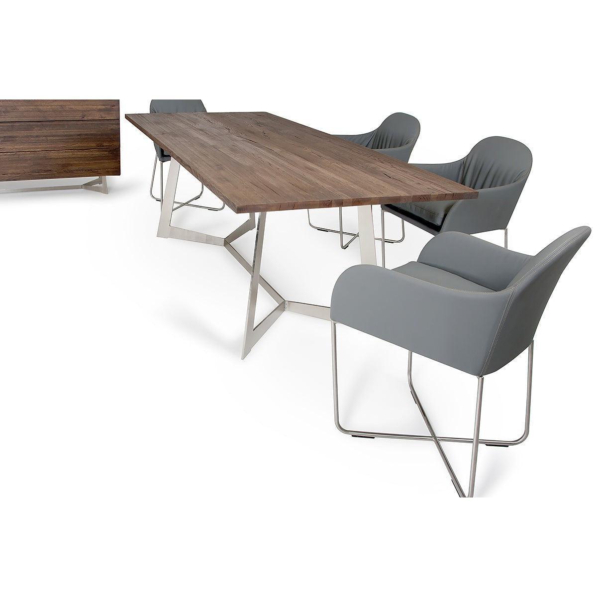 Embellish your dining room with it some stylishness and grace with this exquisite dining table. It has a modern and sturdy design that will definitely refresh the look of your home and eliminate any dullness. Not to mention how obviously well-made it is. This dining table is an expertly crafted piece, which is made from long-lasting veneer, steel, and wood. It's fantastic for making the place livelier. It's also highly practical besides just standing out with its looks. As for measurements, they are 30 for height, 87 for width, and 39 for depth, and it weighs 203 pounds. With this dining table, you'll get a warm and inviting piece for your living room, bedroom, or dining room.