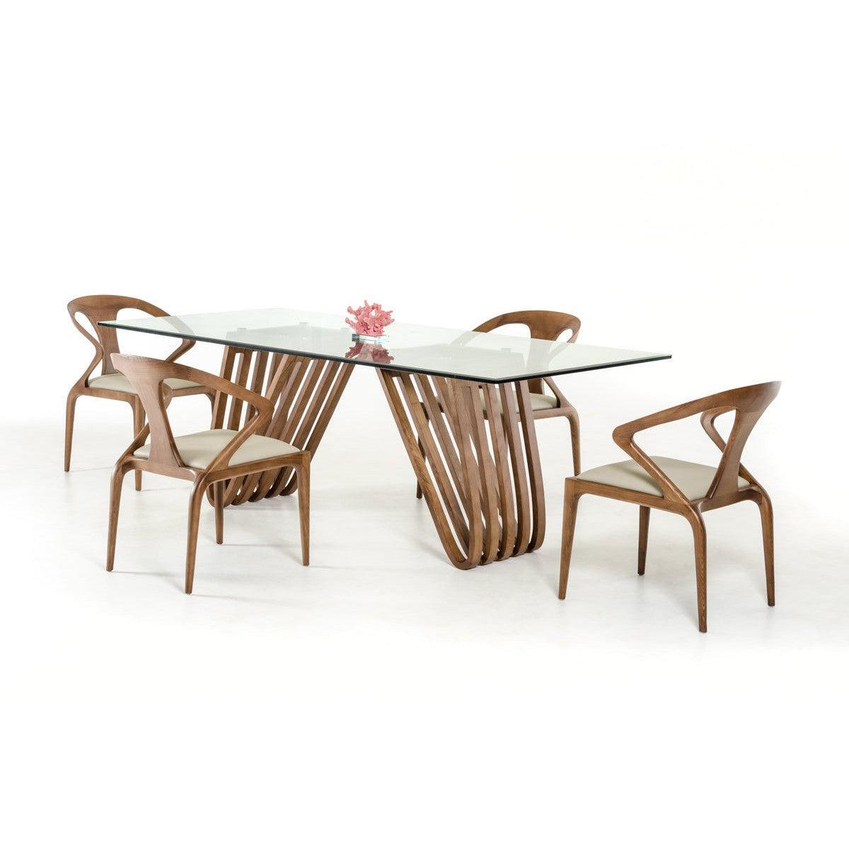 HomeRoots 30" Walnut Wood And Glass Dining Table