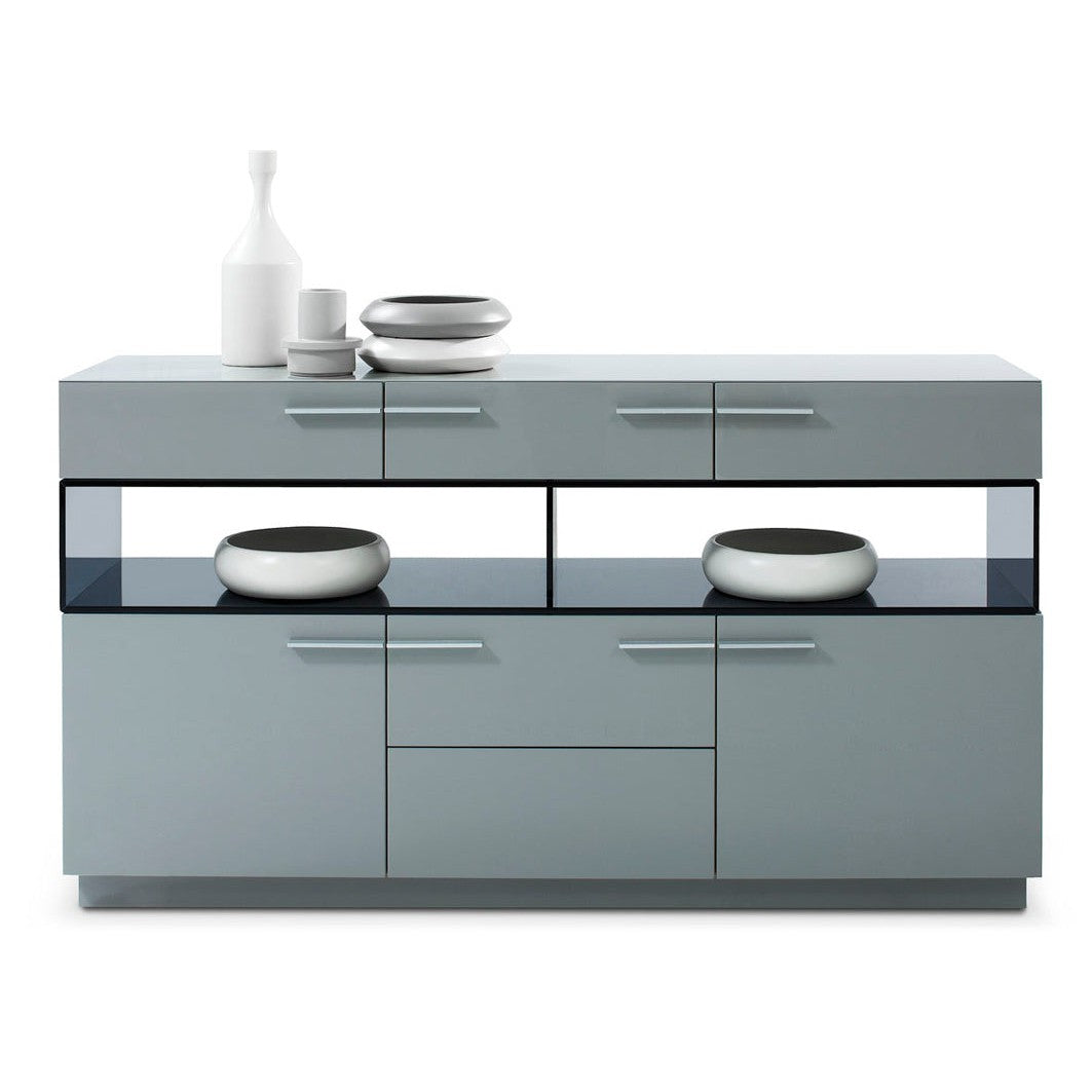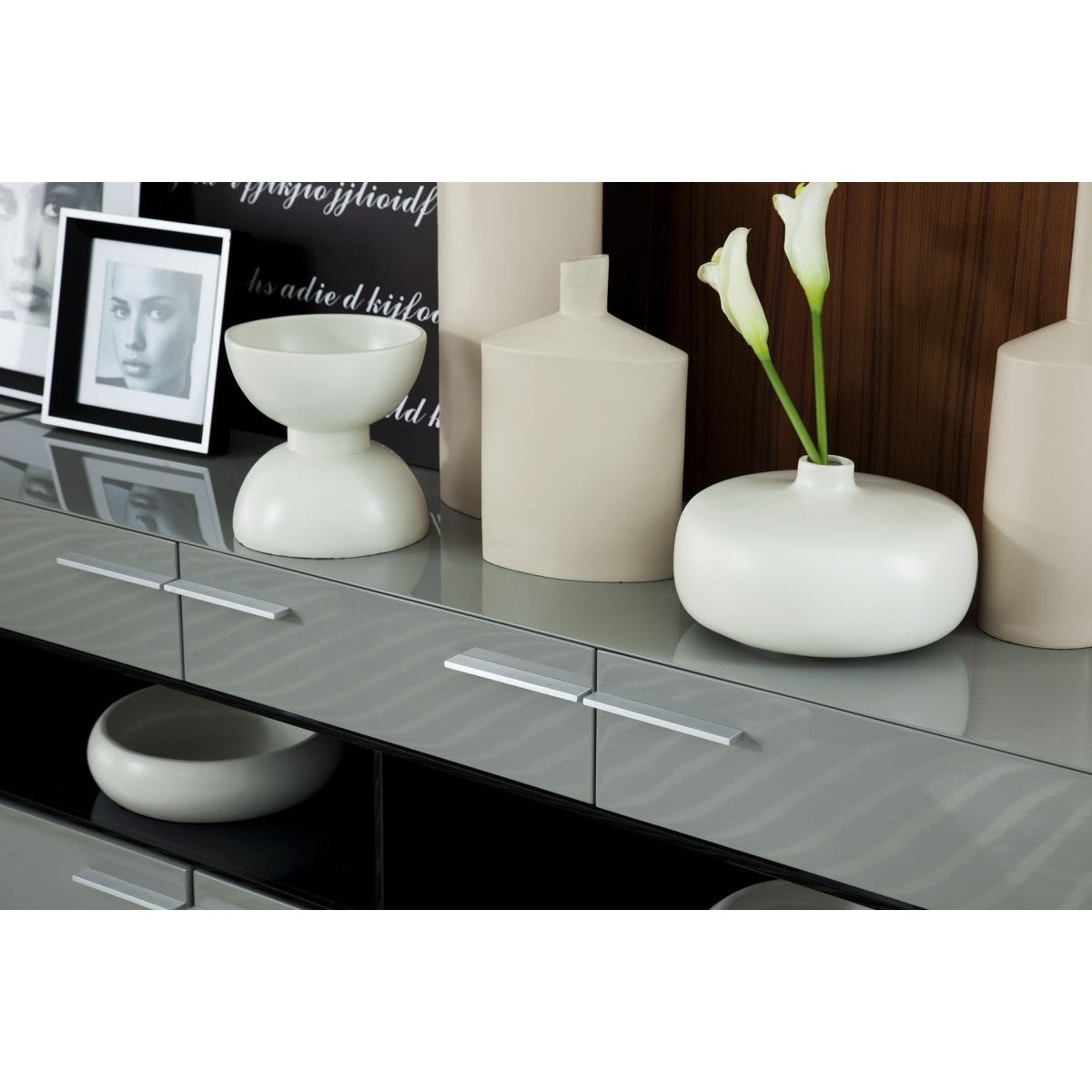 HomeRoots 33" High Gloss Glass Buffet In Grey Finish