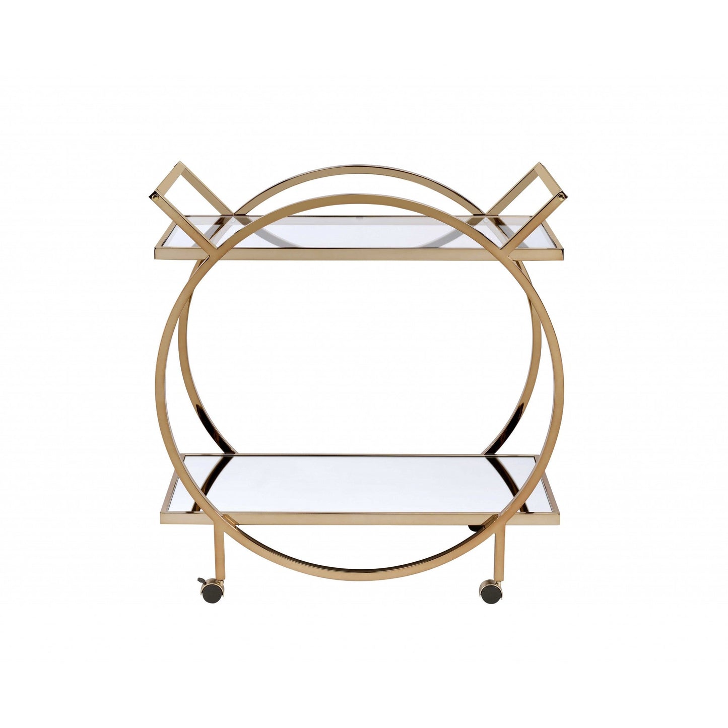 HomeRoots 33" x 19" x 35" Metal Tube Serving Cart In Champagne Finish